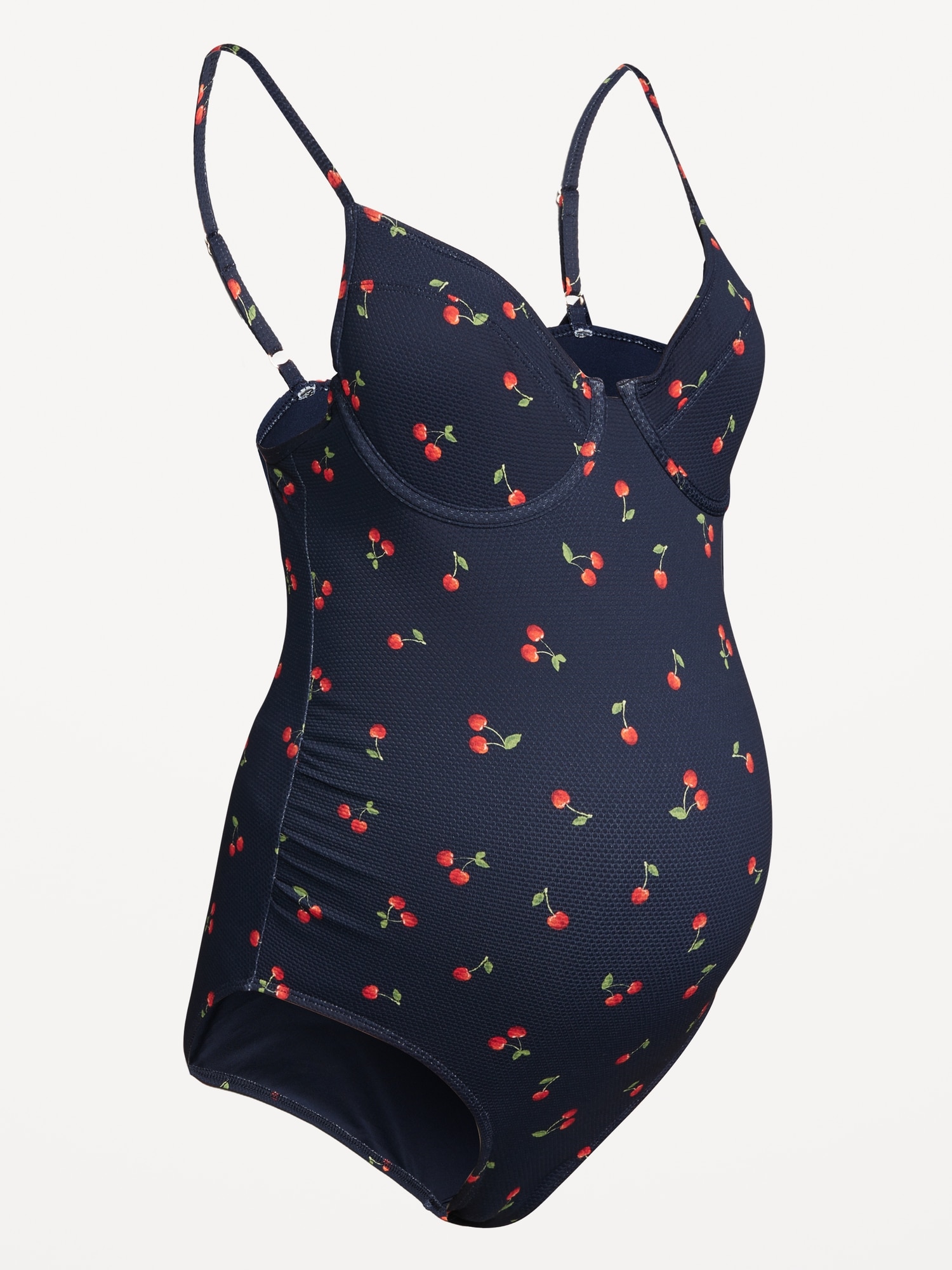 Maternity Textured One-Piece Balconette Swimsuit: adjustable spaghetti straps, underwire support, removable pads, elastic leg openings, #719528