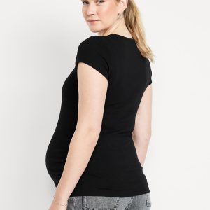 Maternity Trapeze-Neck T-Shirt: rib knit, short sleeves, shirred sides, #775071