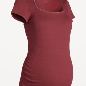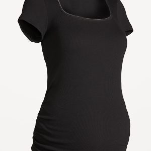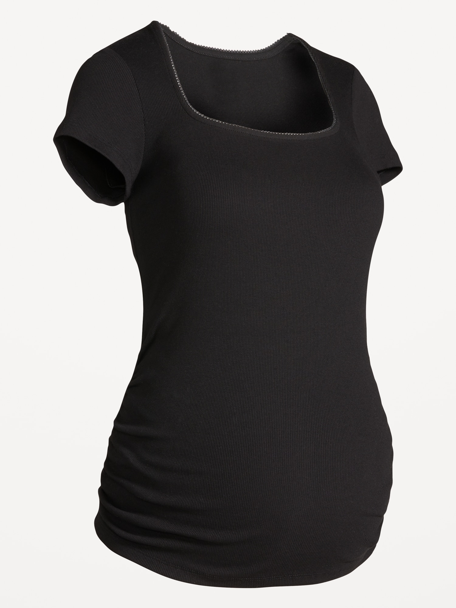 Maternity Trapeze-Neck T-Shirt: rib knit, short sleeves, shirred sides, #775071
