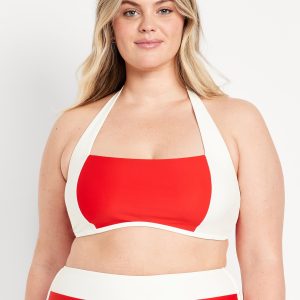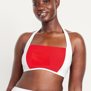Matte Halter Swim Top: straight neck, tie-back halter straps, paneled front, removable pads, hook-and-bar back closure, #747888