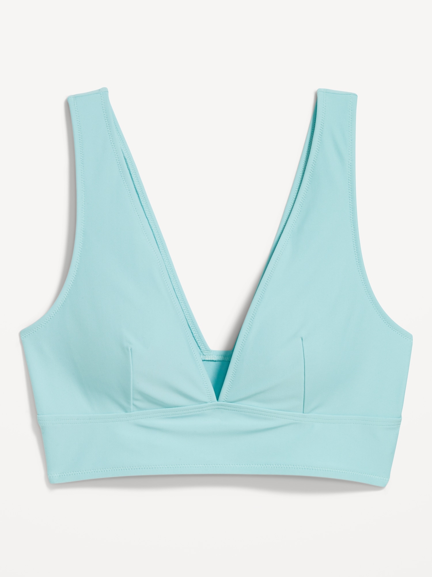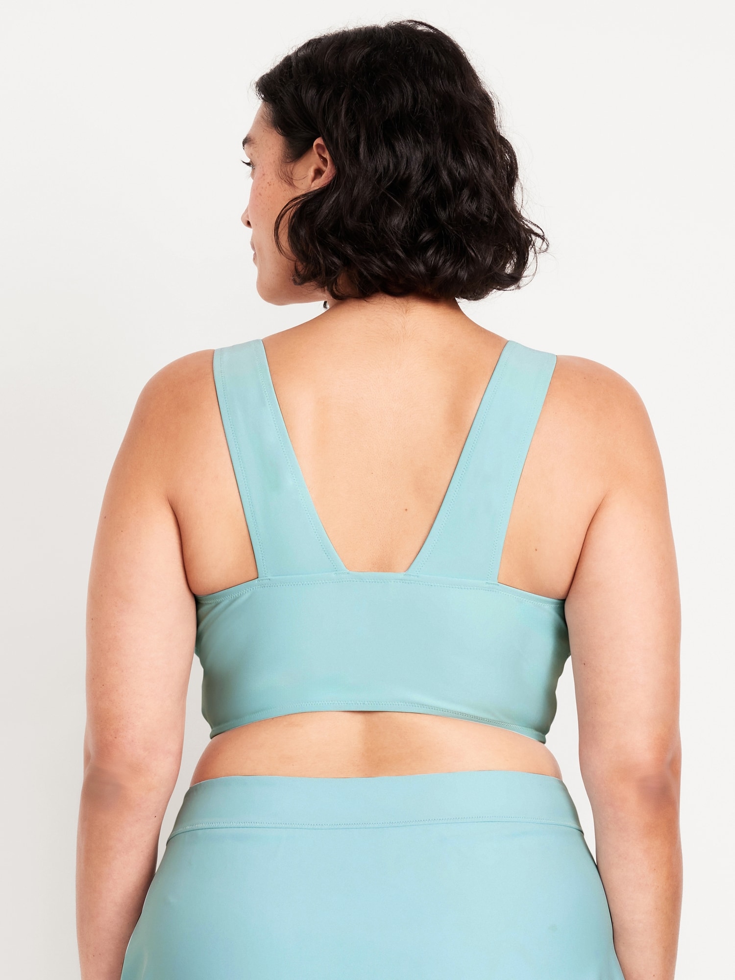 Matte Longline Bikini Swim Top: plunging v-neck, wide straps, removable pads, elastic-banded hem, #865325