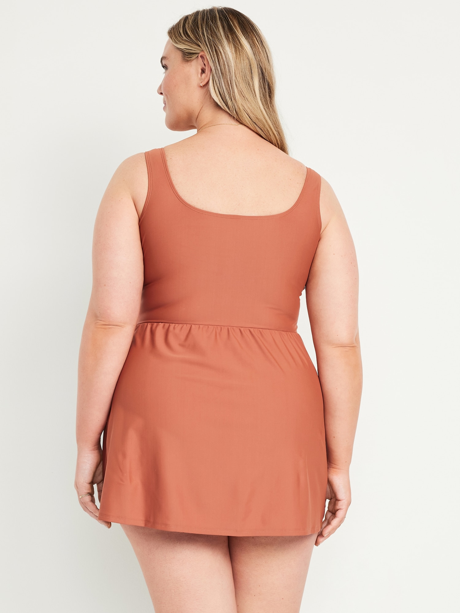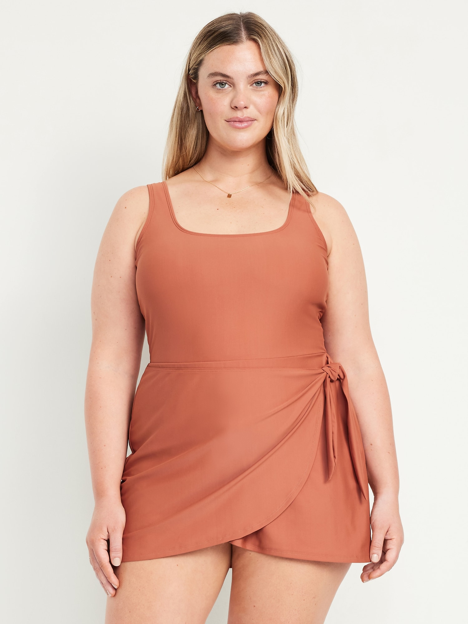 Matte Side-Tie Swim Dress: square neck, wide shoulder straps, removable pads, built-in briefs, #854710