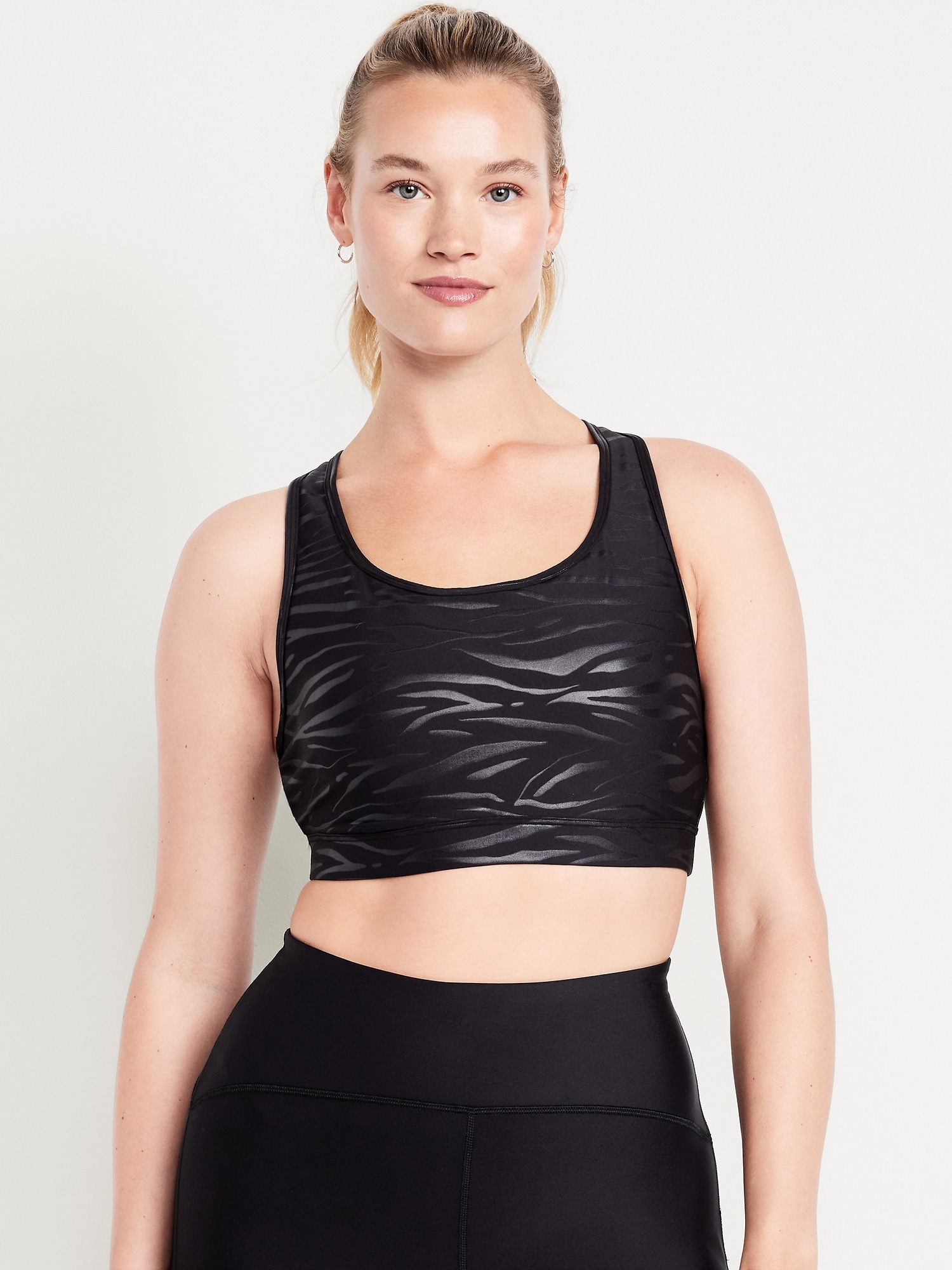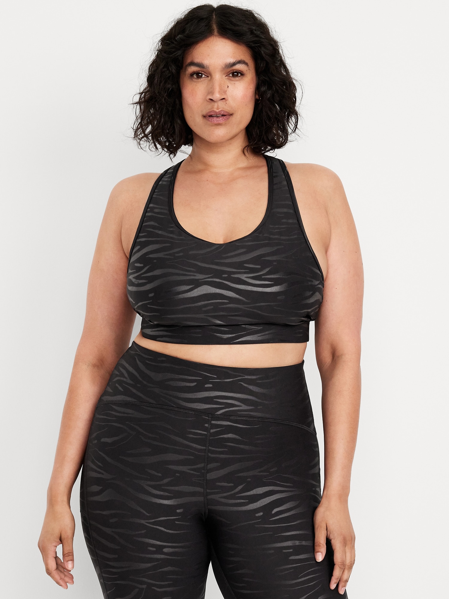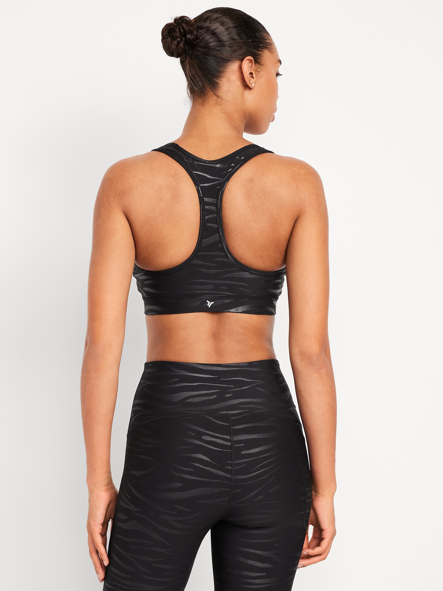 Medium Support PowerSoft Racerback Sports Bra: Featuring PowerSoft. Light compression meets a peachy-smooth, sweat-wicking fabric.stabilizing straps, racerback, front mesh lining with shaped cups, removable pads, banded-elastic hem, go-dry wicks moisture, #569574