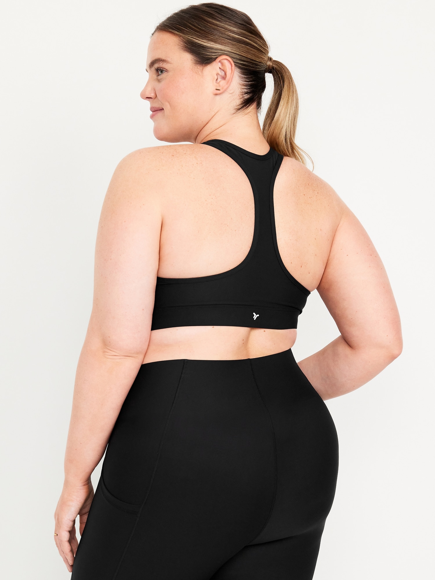 Medium Support PowerSoft Racerback Sports Bra: Featuring PowerSoft. Light compression meets a peachy-smooth, sweat-wicking fabric.stabilizing straps, racerback, front mesh lining with shaped cups, removable pads, banded-elastic hem, go-dry wicks moisture, #569574