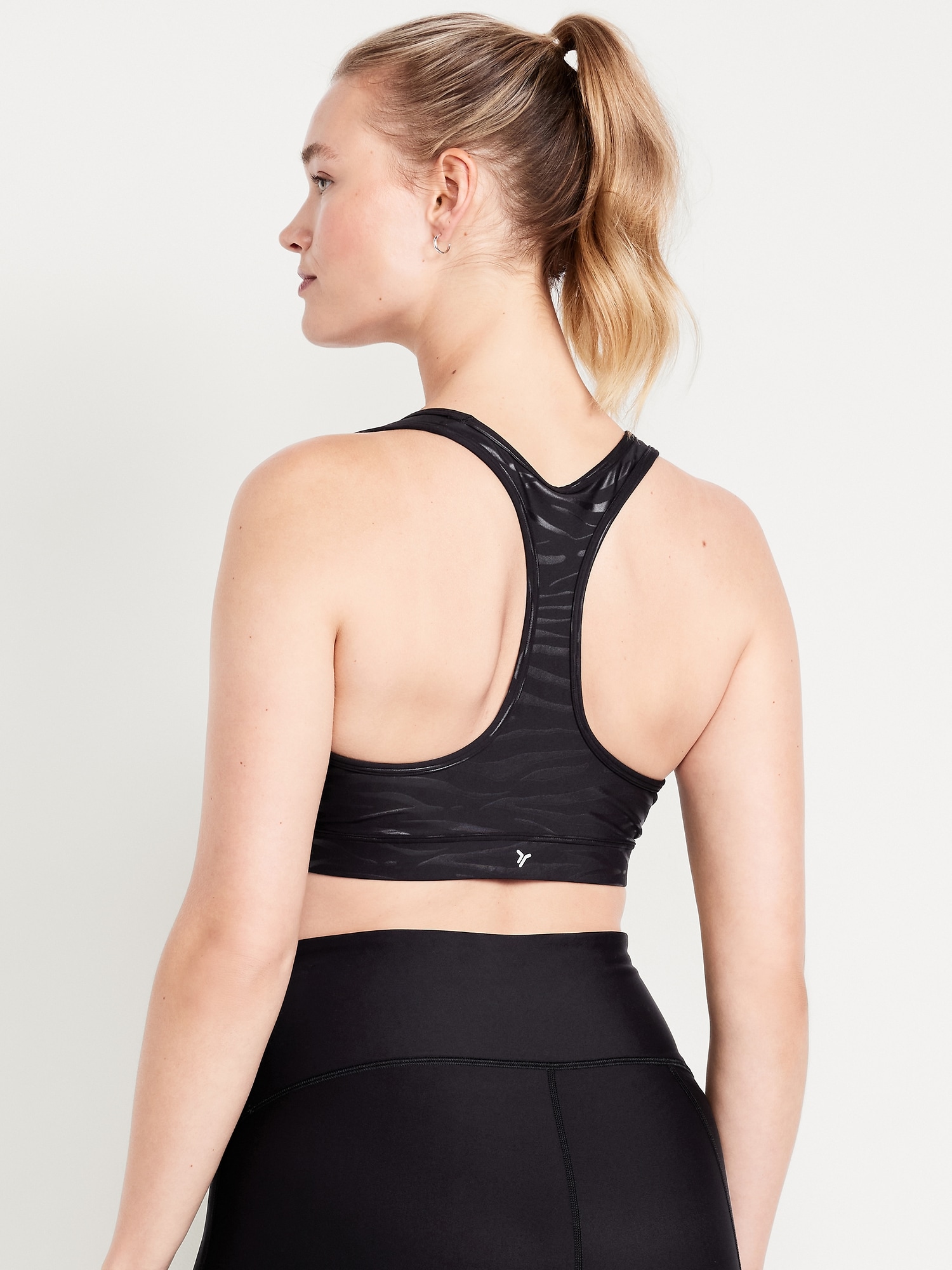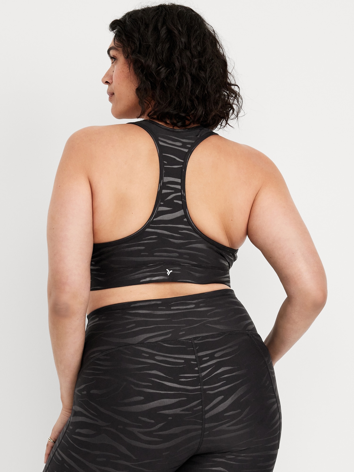 Medium Support PowerSoft Racerback Sports Bra: Featuring PowerSoft. Light compression meets a peachy-smooth, sweat-wicking fabric.stabilizing straps, racerback, front mesh lining with shaped cups, removable pads, banded-elastic hem, go-dry wicks moisture, #569574