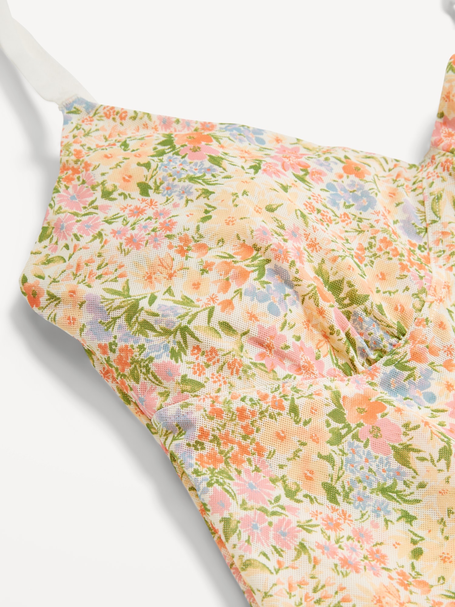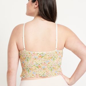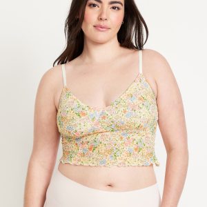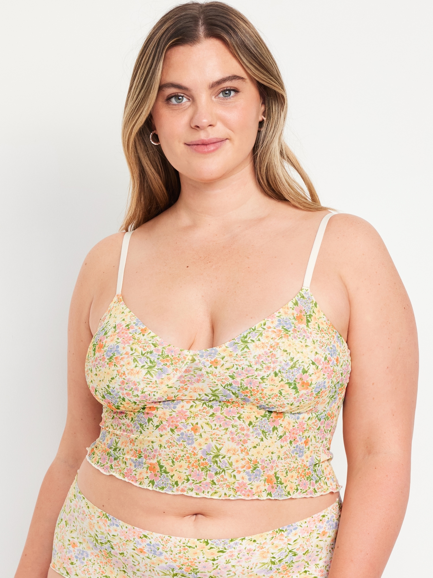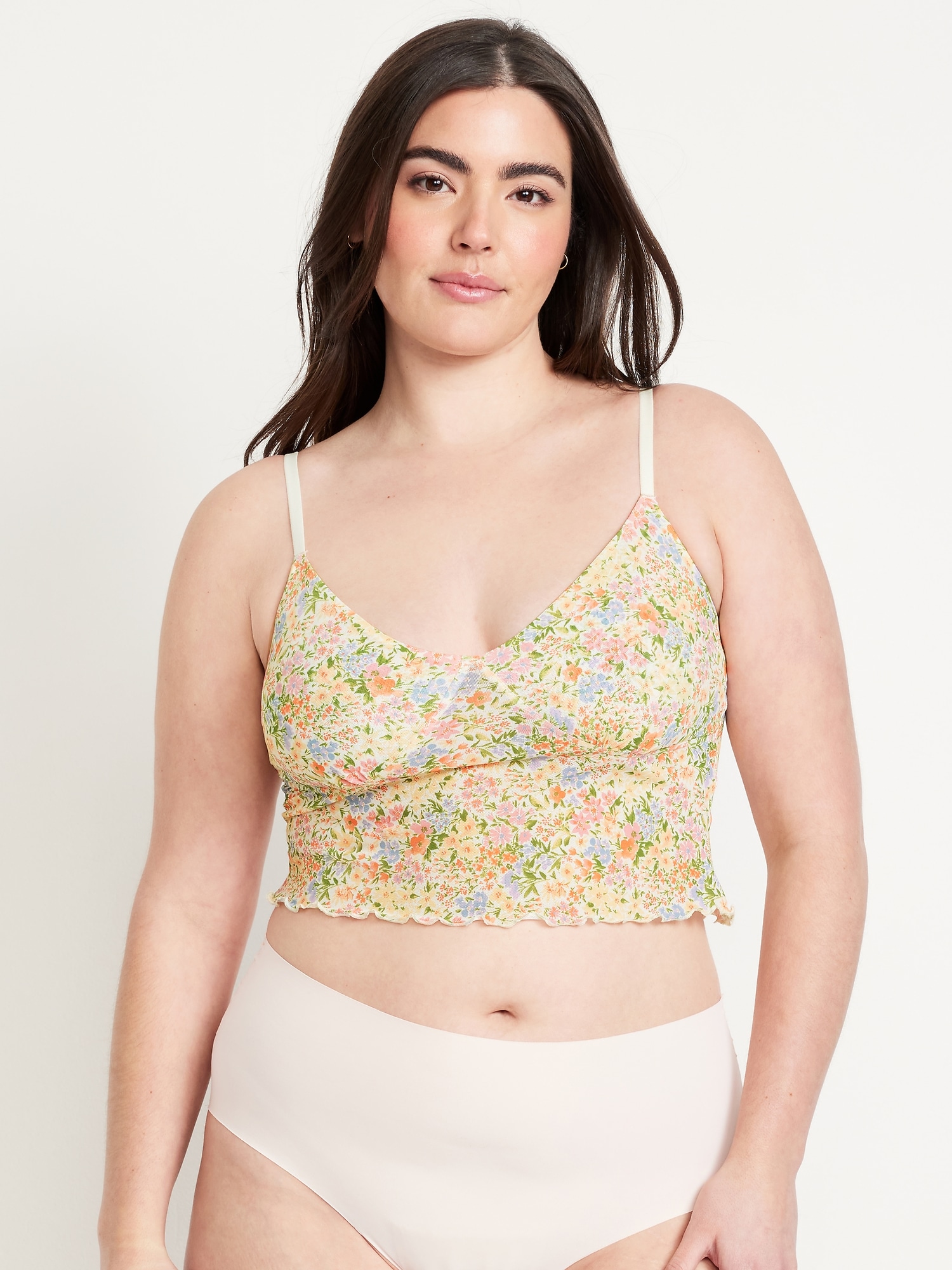 Mesh Cami Lounge Top: scoop neck, adjustable straps, ruffled hem, seamed shirred cups, #687043