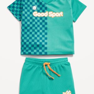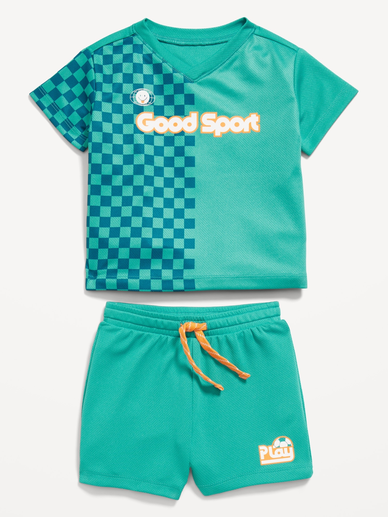 Mesh Graphic Top and Shorts Set for Baby: v neck, short sleeves, graphic at front, matching shorts, elasticized waistband, functional drawstring, online exclusive, #761913