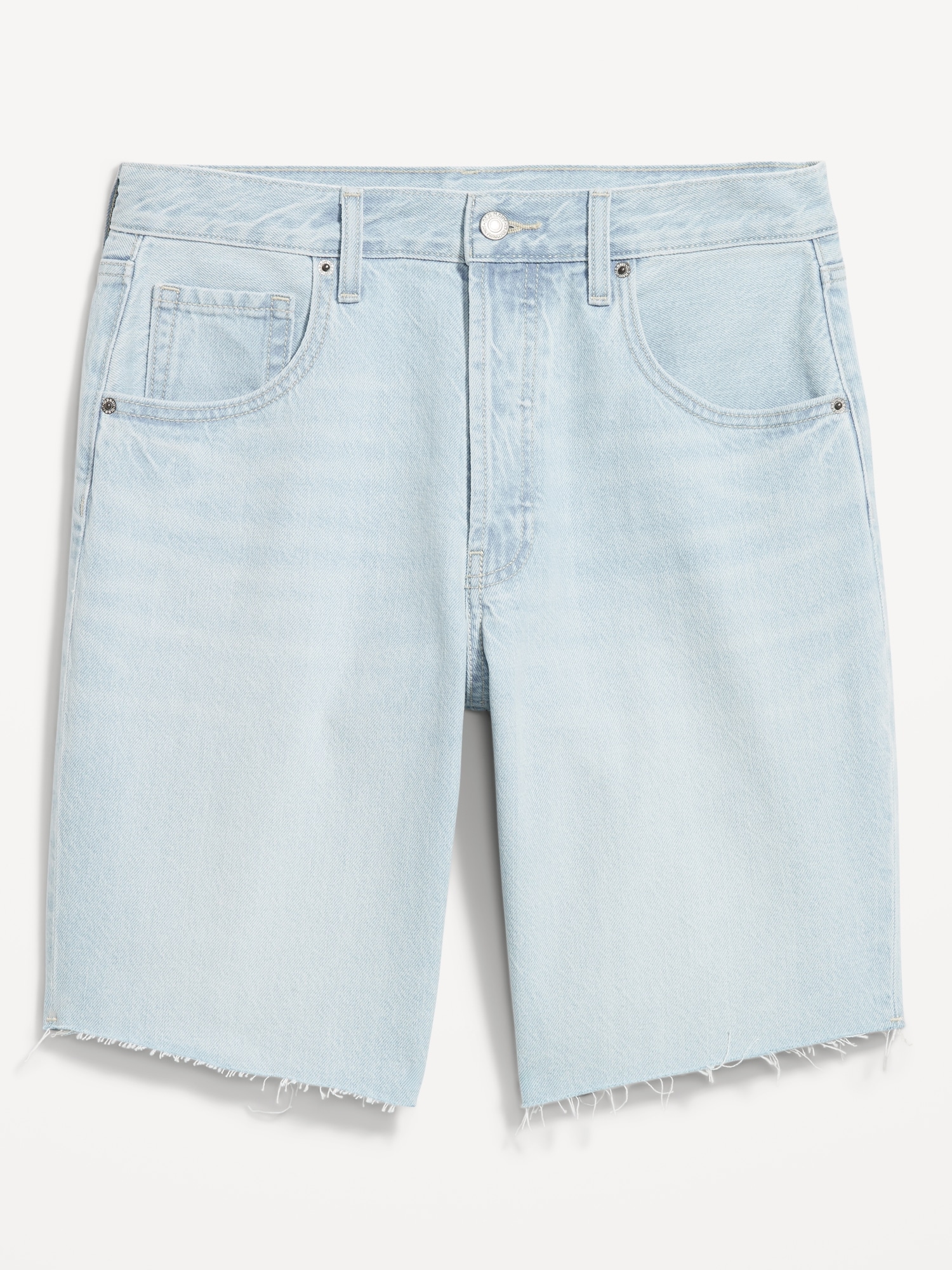 Mid-Rise Baggy Cut-Off Jean Bermuda Shorts — 9-inch inseam: mid-rise waist, hidden button fly, #844573