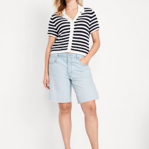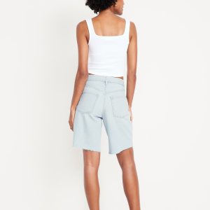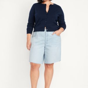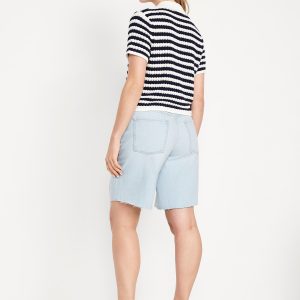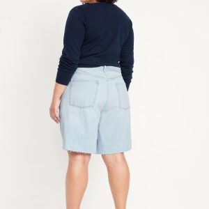Mid-Rise Baggy Cut-Off Jean Bermuda Shorts — 9-inch inseam