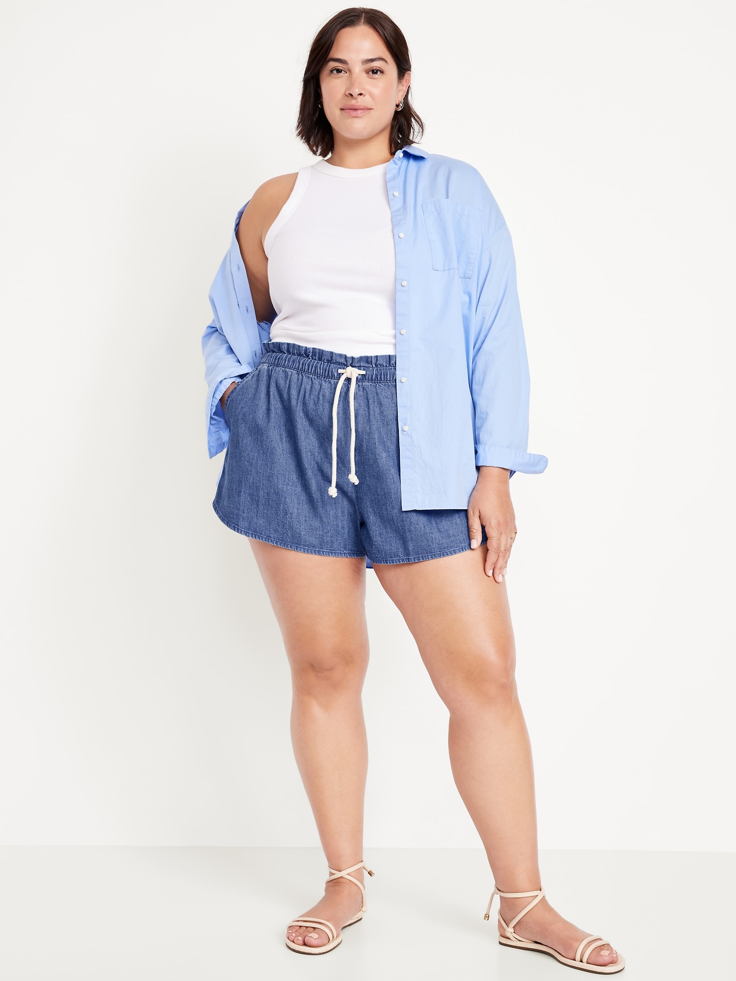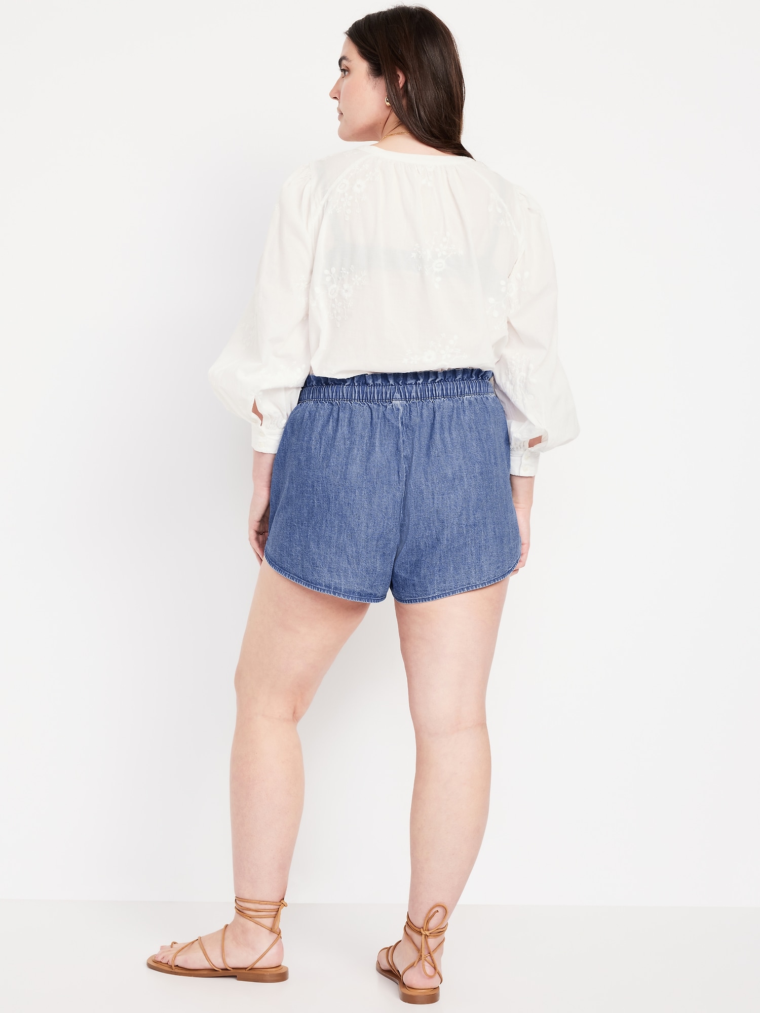 Mid-Rise Jean Volume Shorts: mid-rise elastic-drawstring waist, diagonal hip pockets, #844572