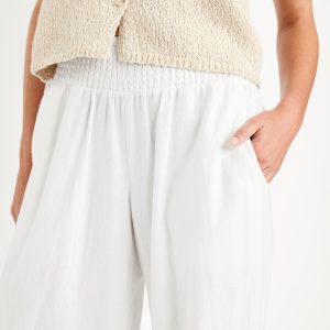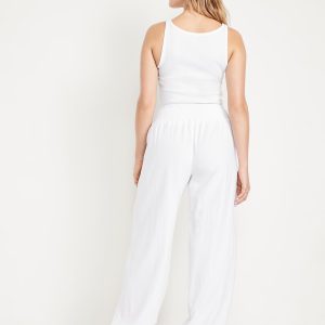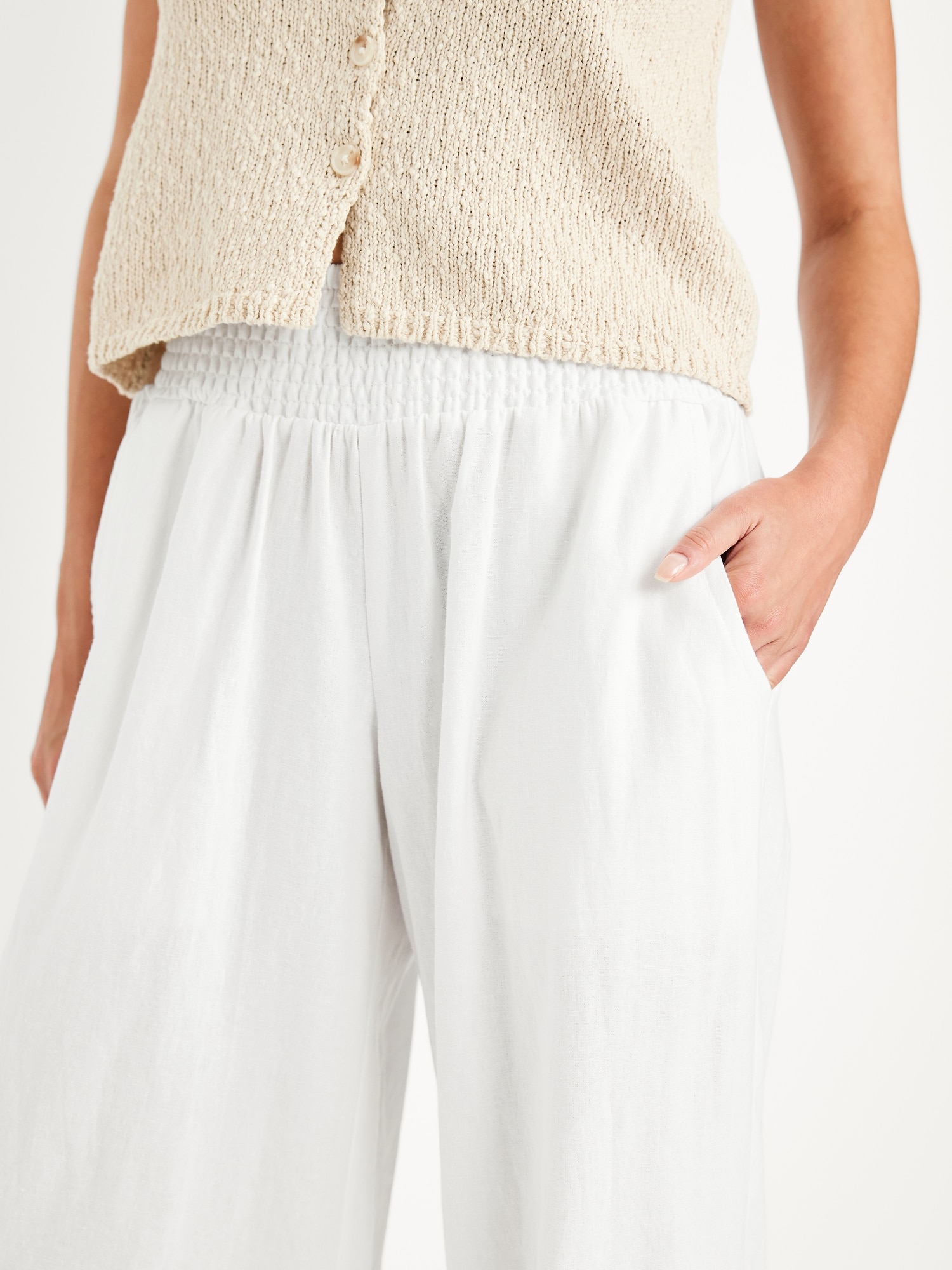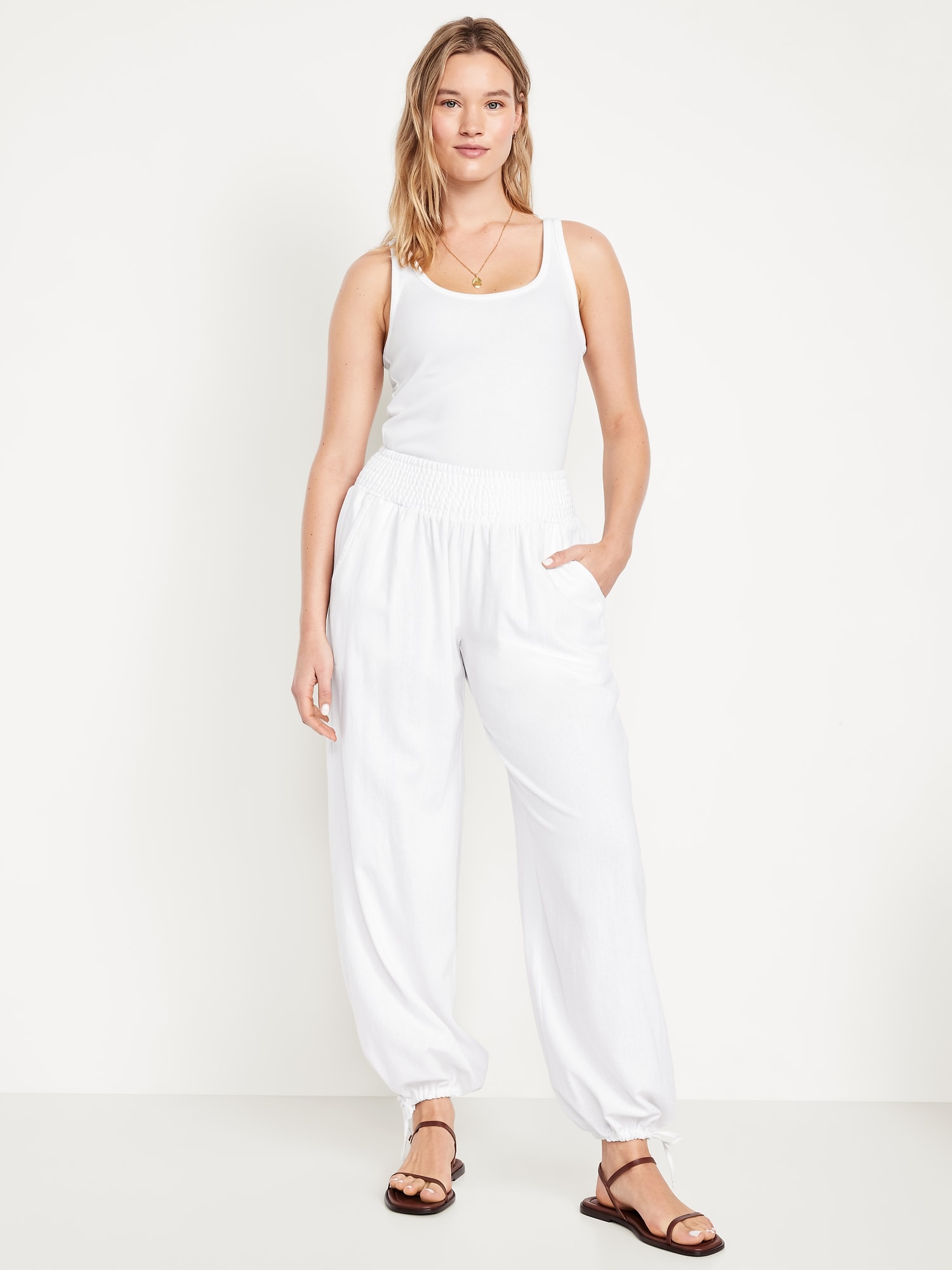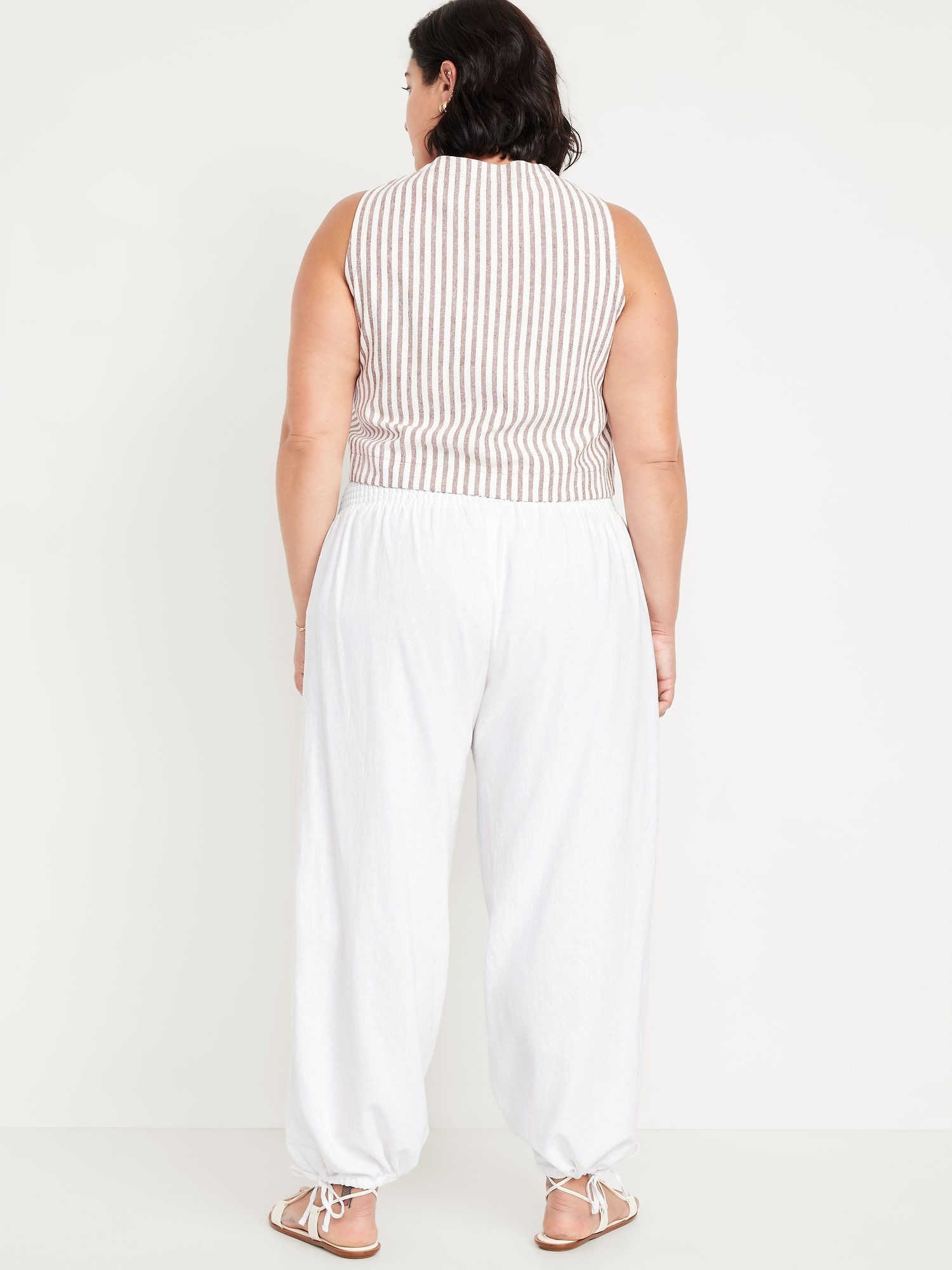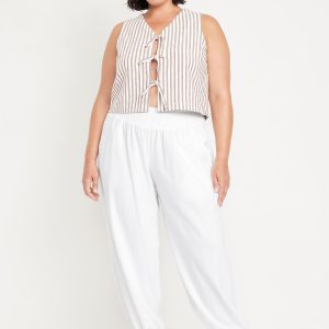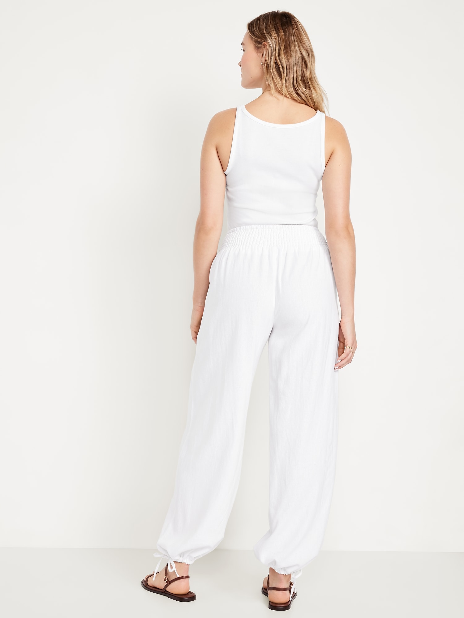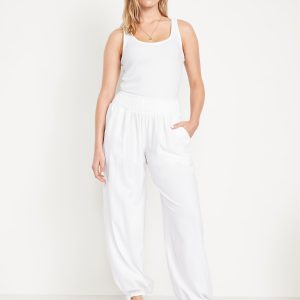 Mid-Rise Linen-Blend Harem Pants: smocked-elastic waistband, front pockets, cinched hem, #784297