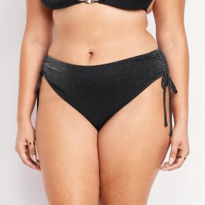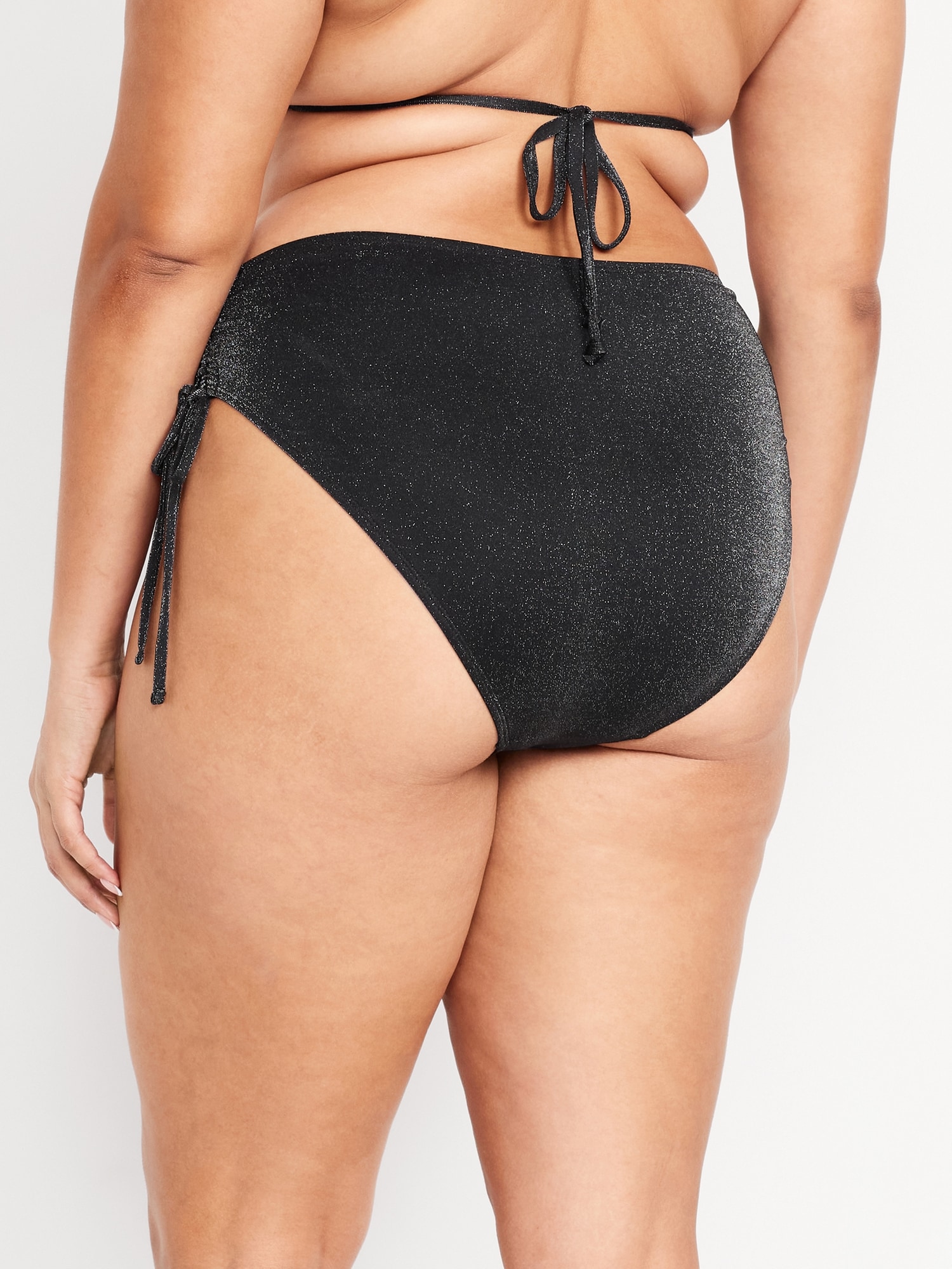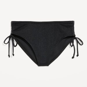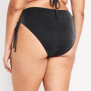 Mid-Rise Side-Tie Shine Bikini Swim Bottoms