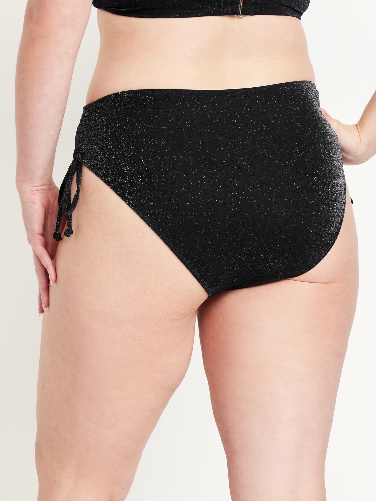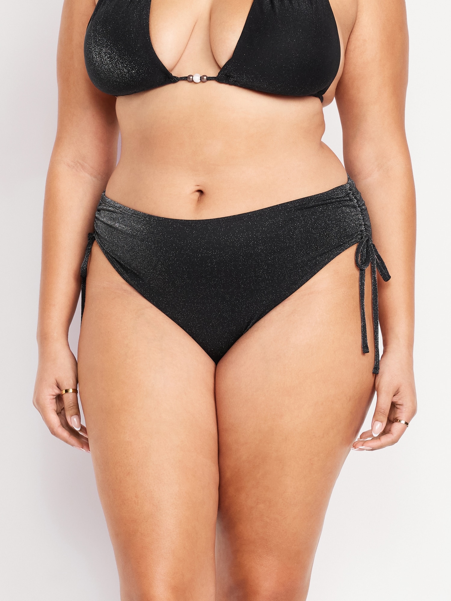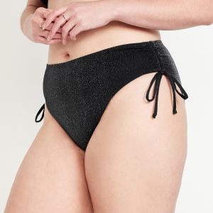 Mid-Rise Side-Tie Shine Bikini Swim Bottoms: side ties with ruched detail, elastic leg openings, why blend in when you can shine?, #660460