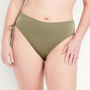 Mid-Rise Side-Tie Shine Bikini Swim Bottoms