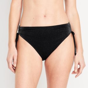 Mid-Rise Side-Tie Shine Bikini Swim Bottoms