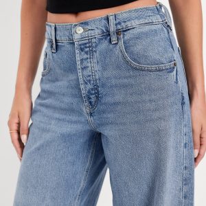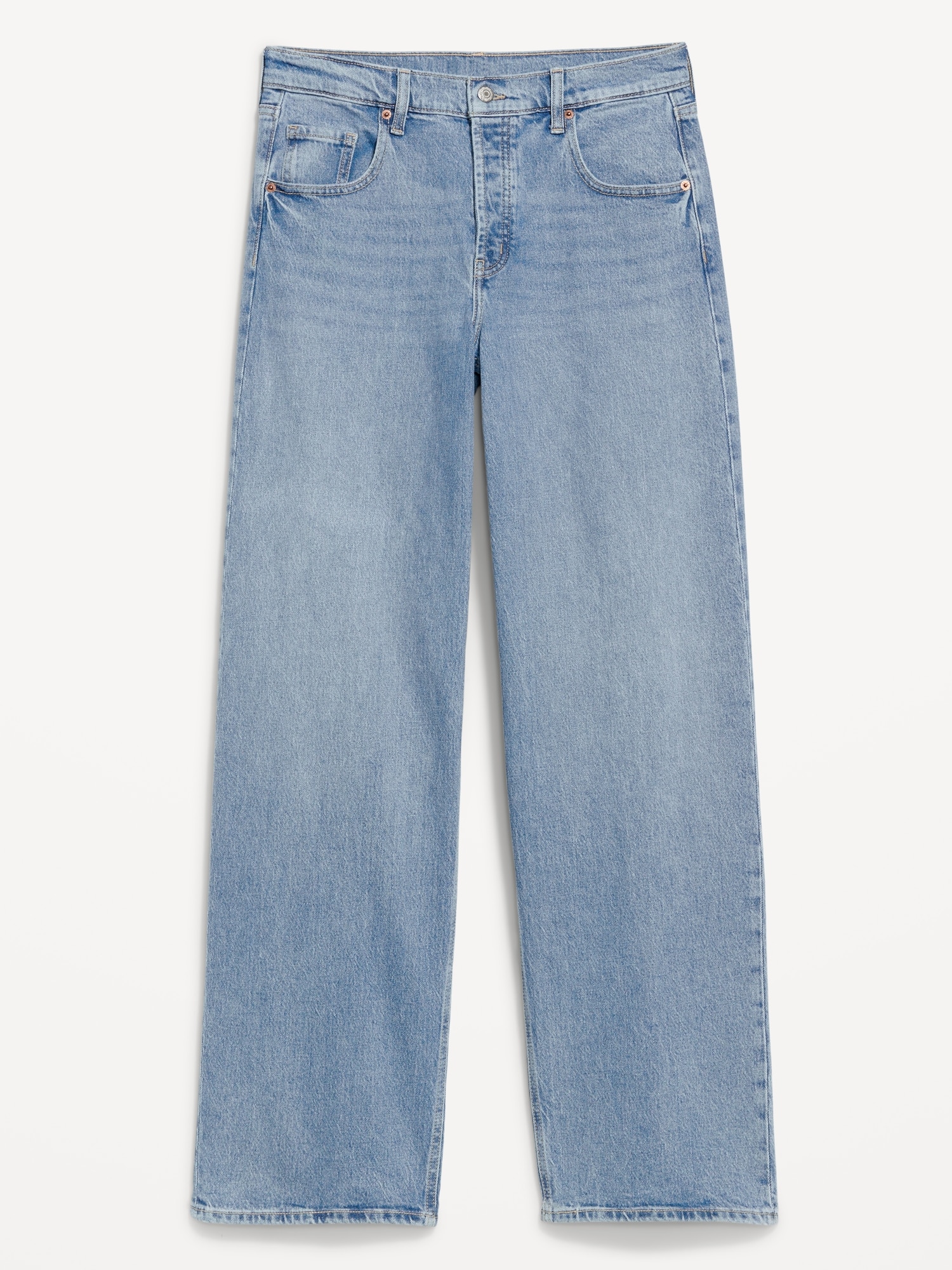 Mid-Rise Slouchy Wide-Leg Jeans: Low-slung and laid back with a long silhouette.mid-rise waist that’s low slung on the hips, hidden button fly, wide leg puddles at hem, #805772
