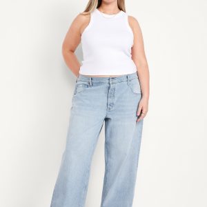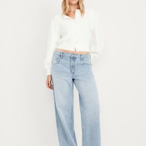 Mid-Rise Slouchy Wide-Leg Jeans: Low-slung and laid back with a long silhouette.mid-rise waist that’s low slung on the hips, hidden button fly, wide leg puddles at hem, #805772
