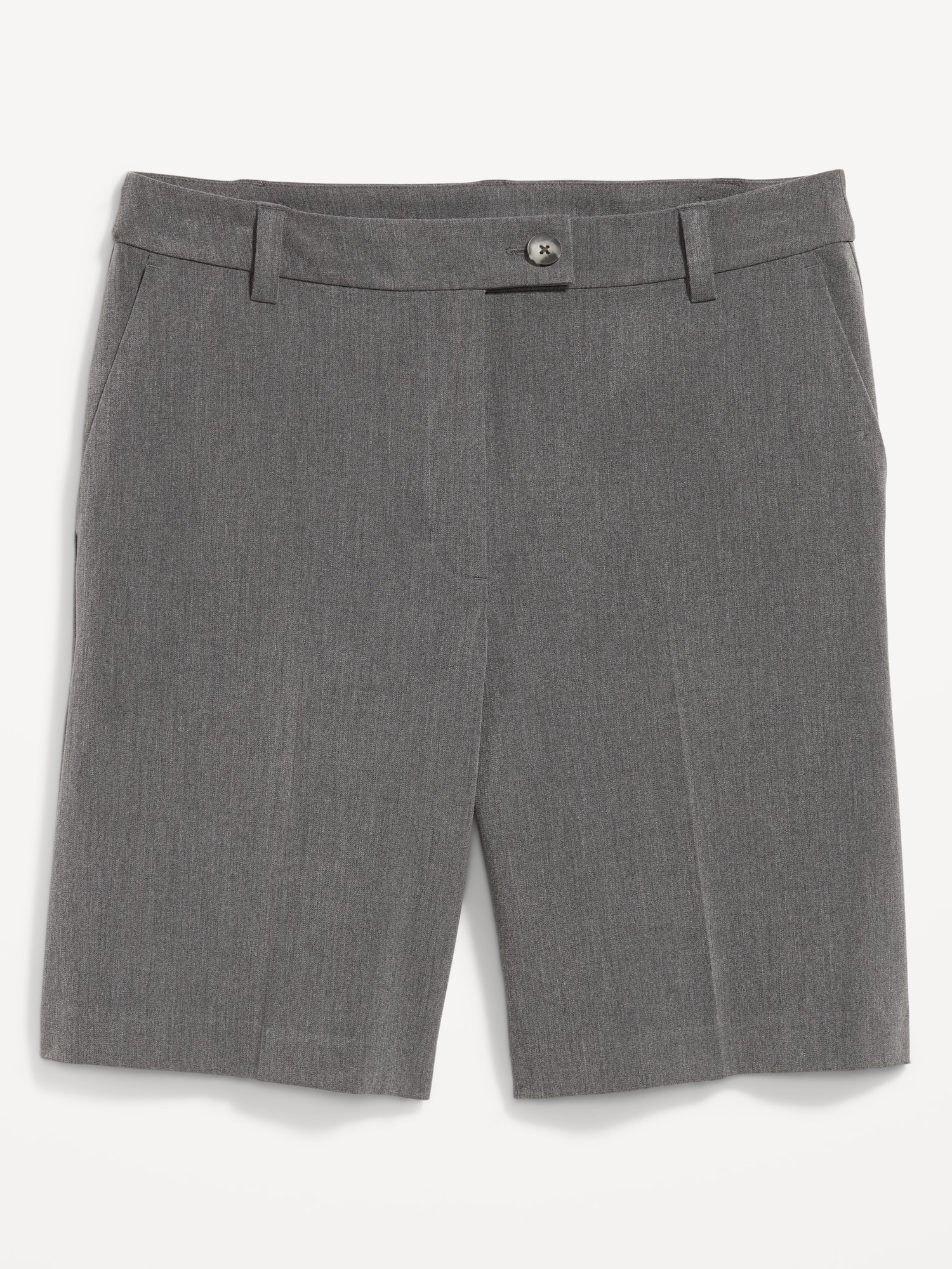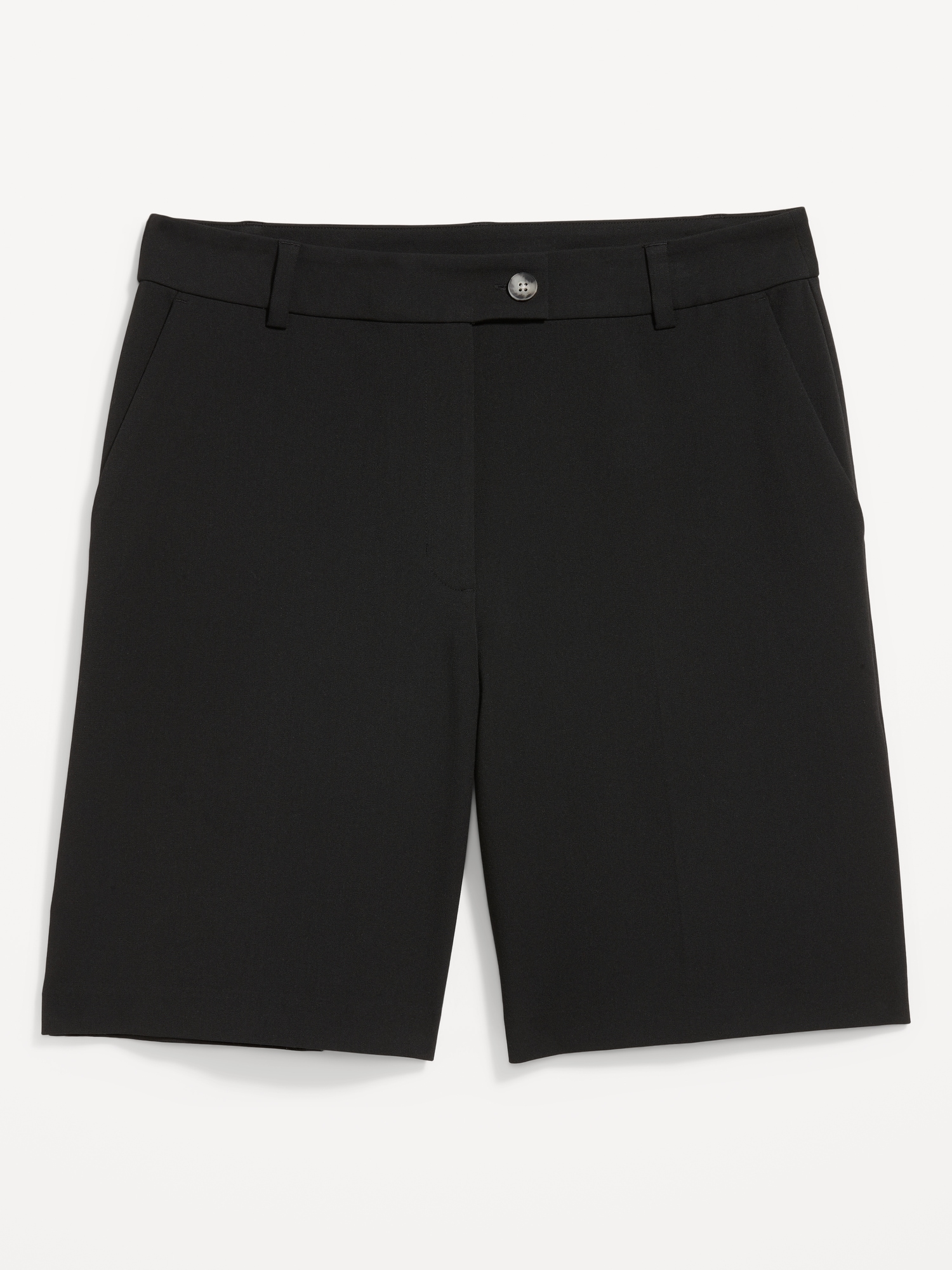 Mid-Rise Taylor Bermuda Shorts — 10-inch inseam: button-front waistband, belt loops, creased leg, zip fly, diagonal front pockets, back right welt pocket, #749153