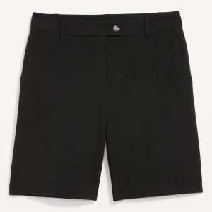 Mid-Rise Taylor Bermuda Shorts — 10-inch inseam: button-front waistband, belt loops, creased leg, zip fly, diagonal front pockets, back right welt pocket, #749153