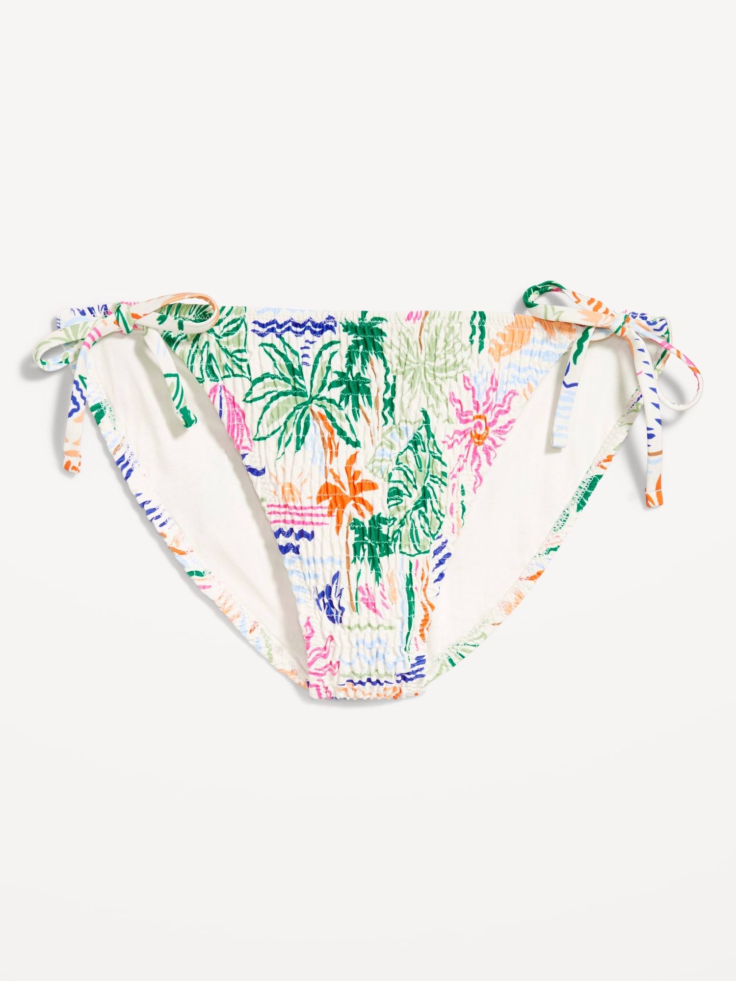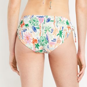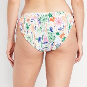 Mid-Rise Textured String Bikini Swim Bottoms: side ties, elastic waist, elastic leg openings, #864987
