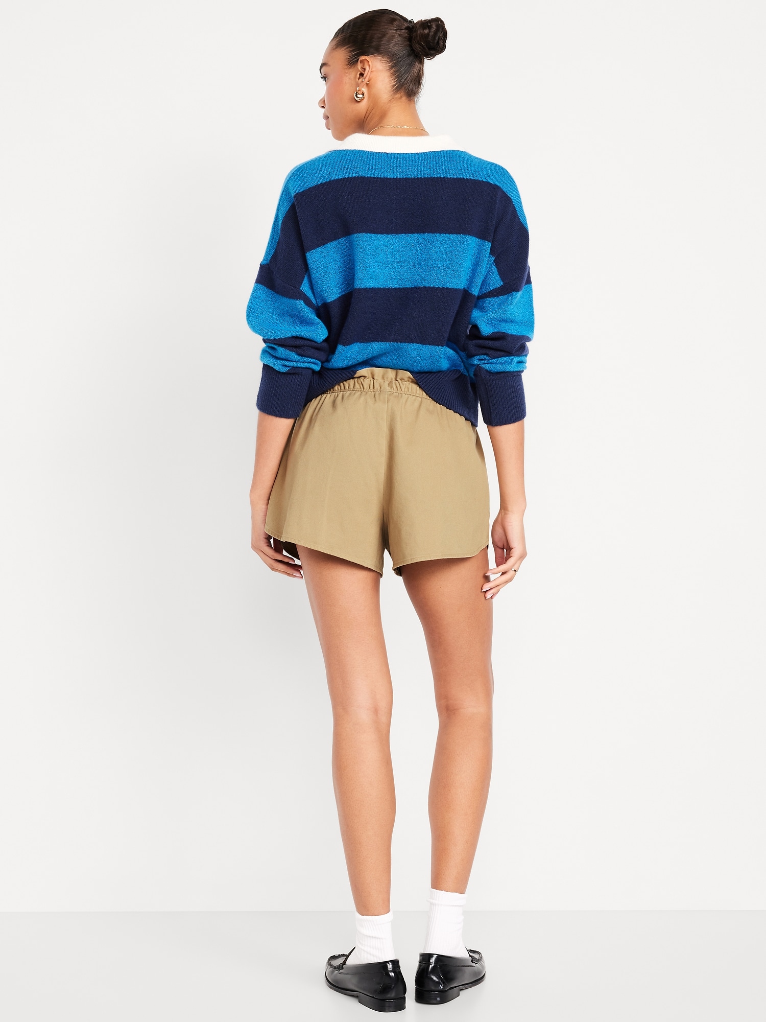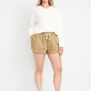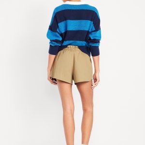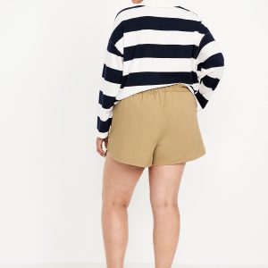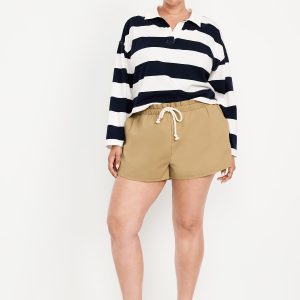 Mid-Rise Twill Volume Shorts: mid-rise elastic-drawstring waist, diagonal hip pockets, #844572
