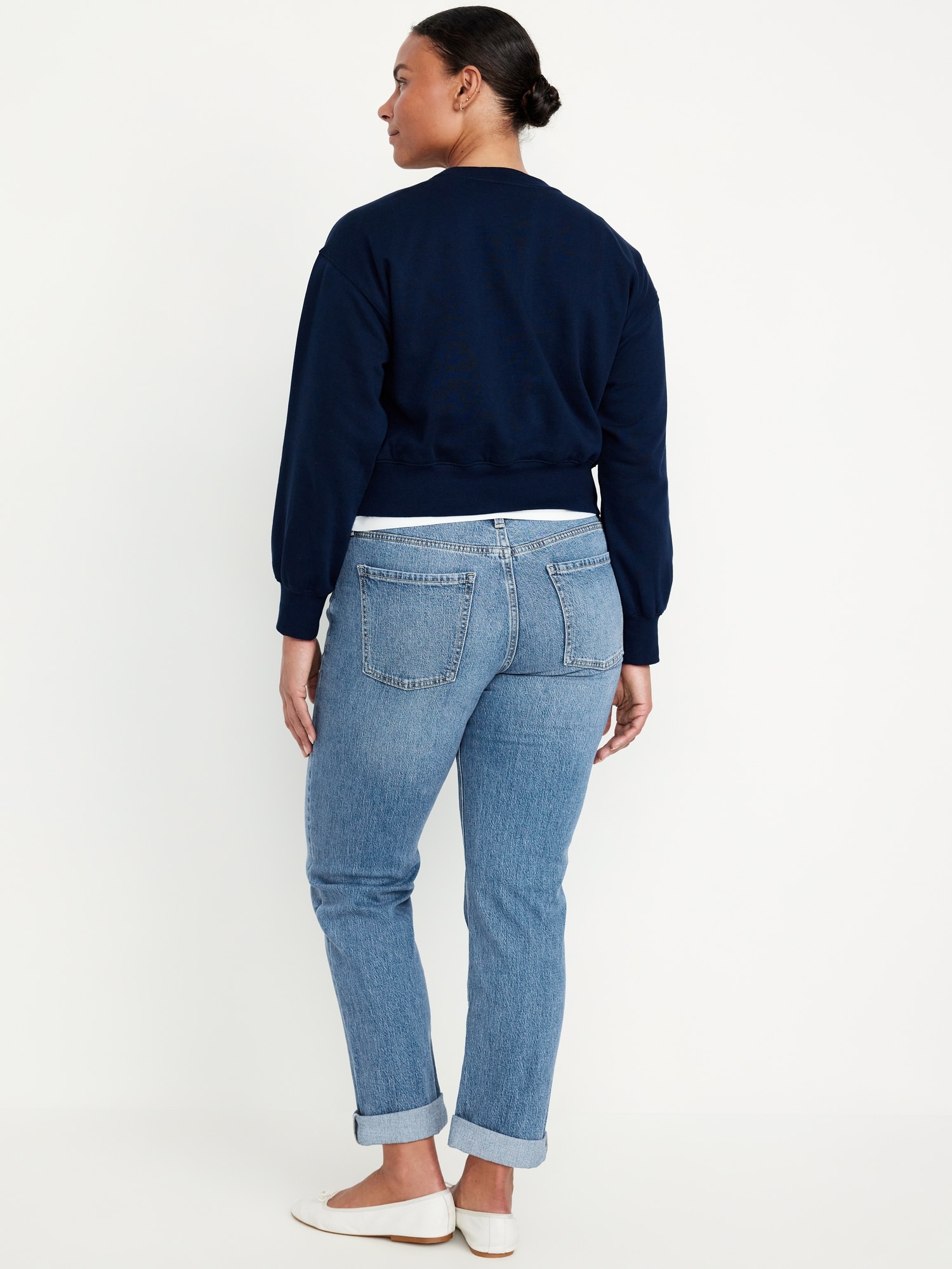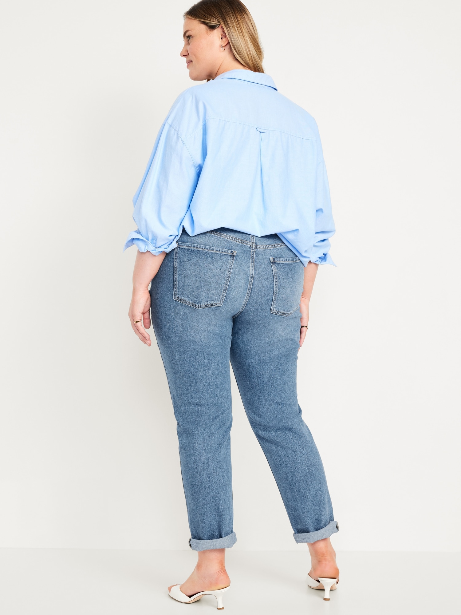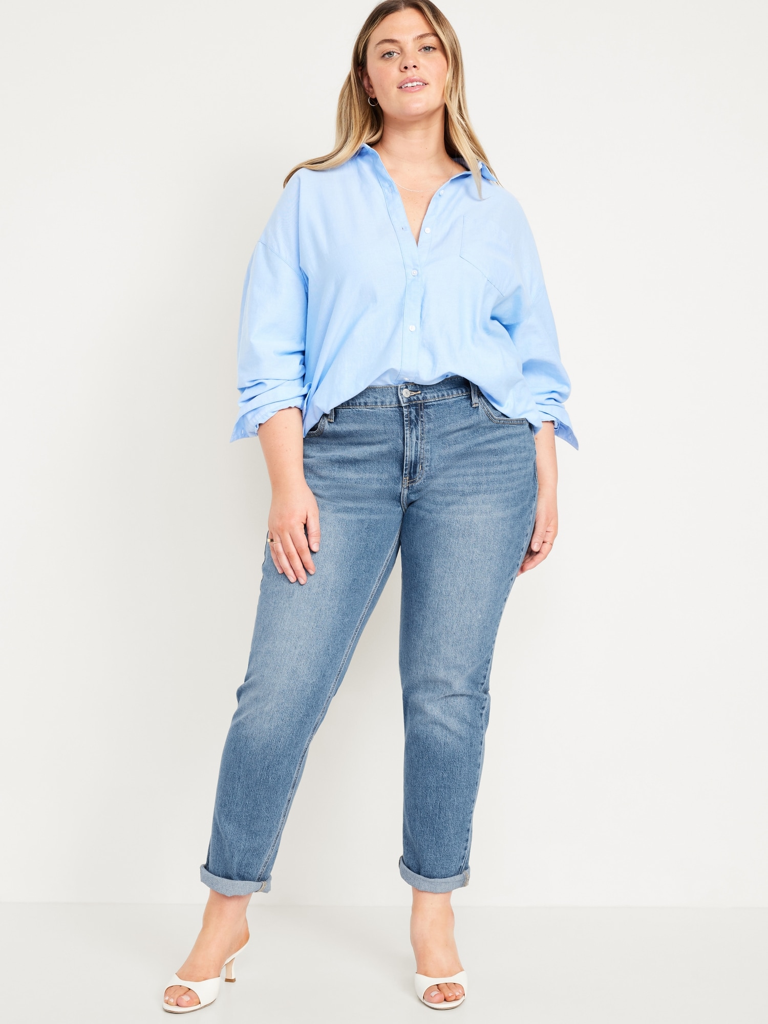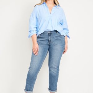 Mid-Rise Wow Boyfriend Straight Jeans: A slouchy straight leg at a jaw-dropping price.mid-rise waist, button front, belt loops, zip fly, front scoop pockets, back patch pockets, straight leg, cuffs can be rolled for boyfriend styling, #732591