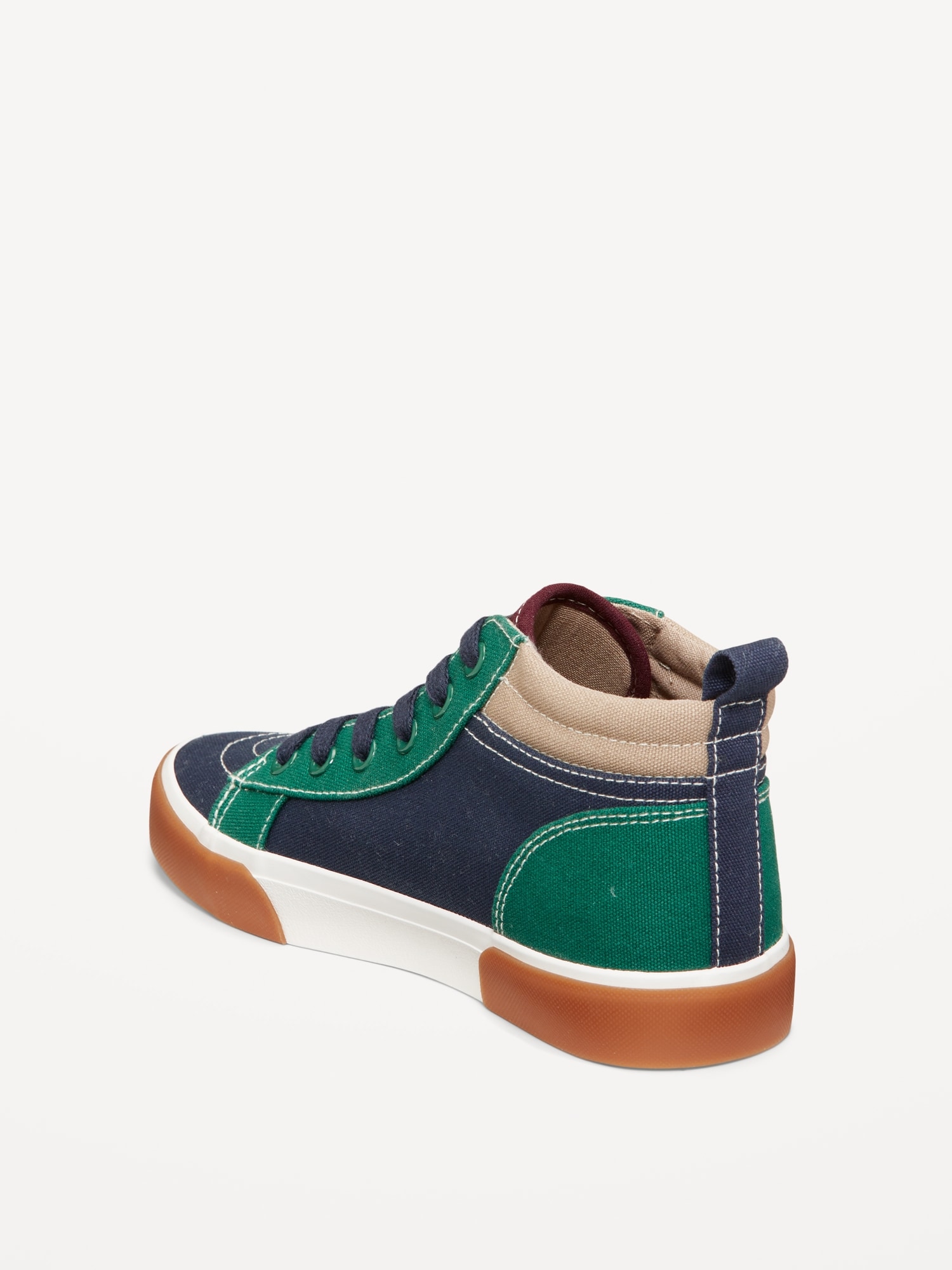 Mid-Top Canvas Lace-Up Sneakers for Boys: cushioned foot bed, contrasting rubber midsole, vulcanized outsole, padded collar for gentle ankle support, pull tab at heel, #761661
