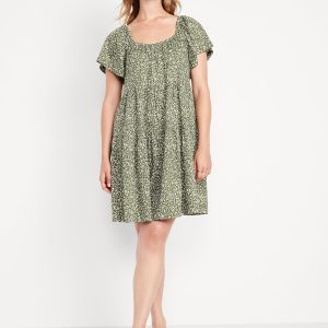 Mini Floral Swing Dress: square elastic neckline, flutter sleeves, tiered seams, shirred detail, #809629