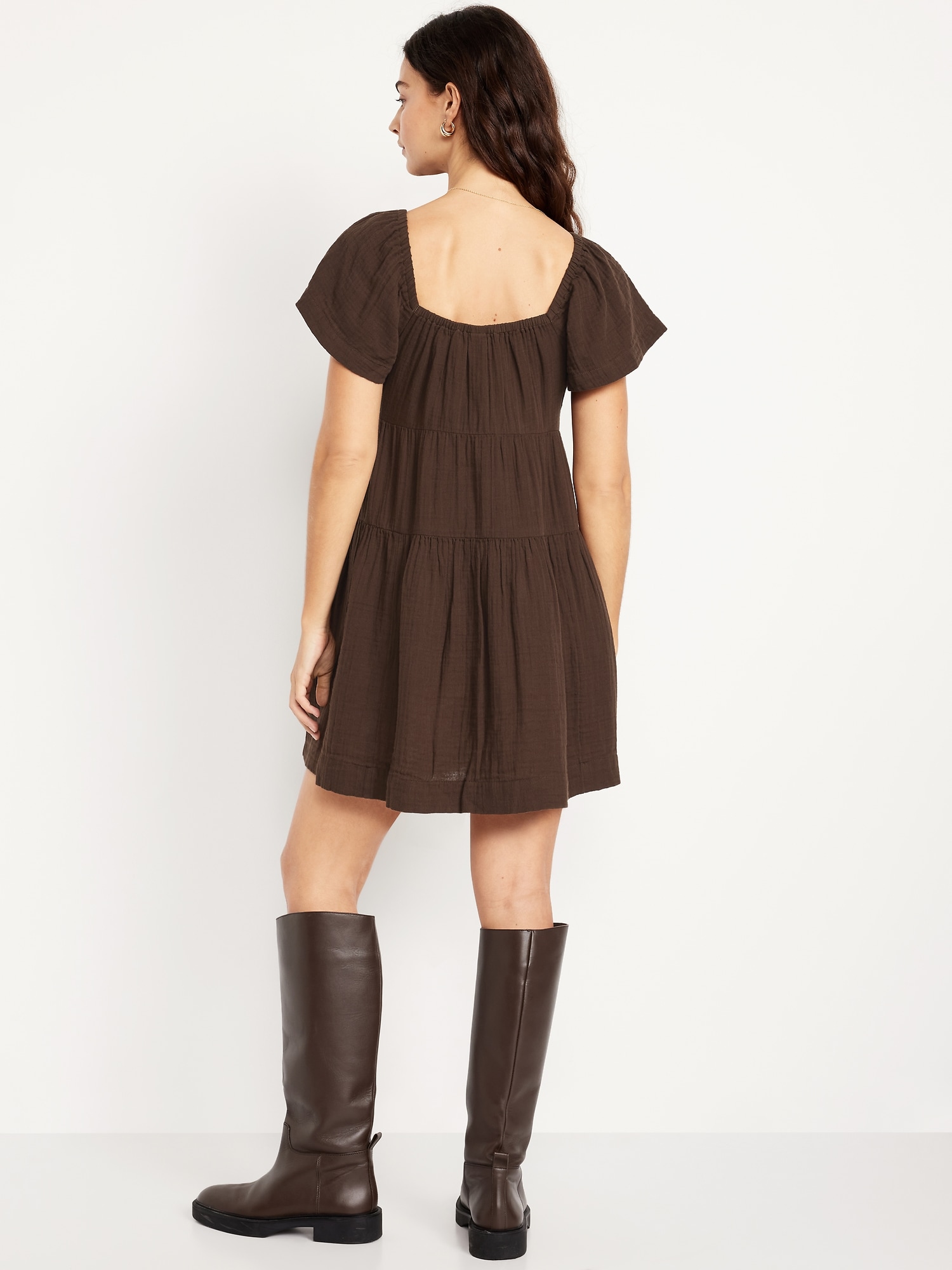 Mini Floral Swing Dress: square elastic neckline, flutter sleeves, tiered seams, shirred detail, #809629
