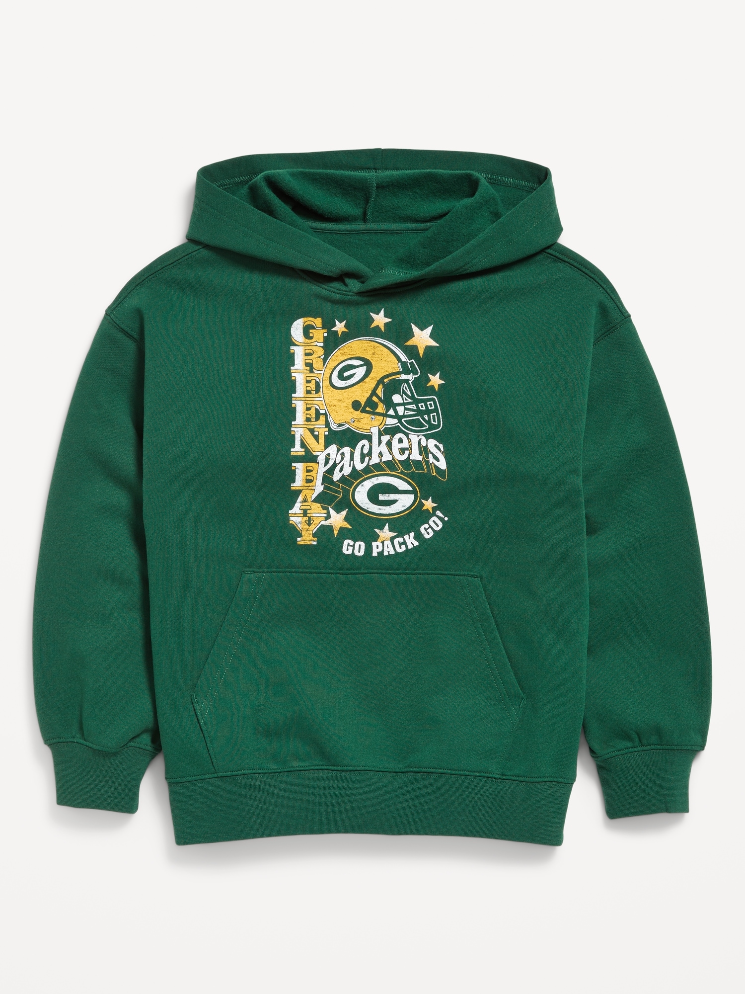 NFL™ Green Bay Packers™ Oversized Pullover Hoodie for Boys: built-in hood, long sleeves, drop shoulders, licensed graphic, kangaroo pocket, © 2025 NFL Enterprises LLC. NFL and the NFL shield design are registered trademarks of the National Football League., #805528