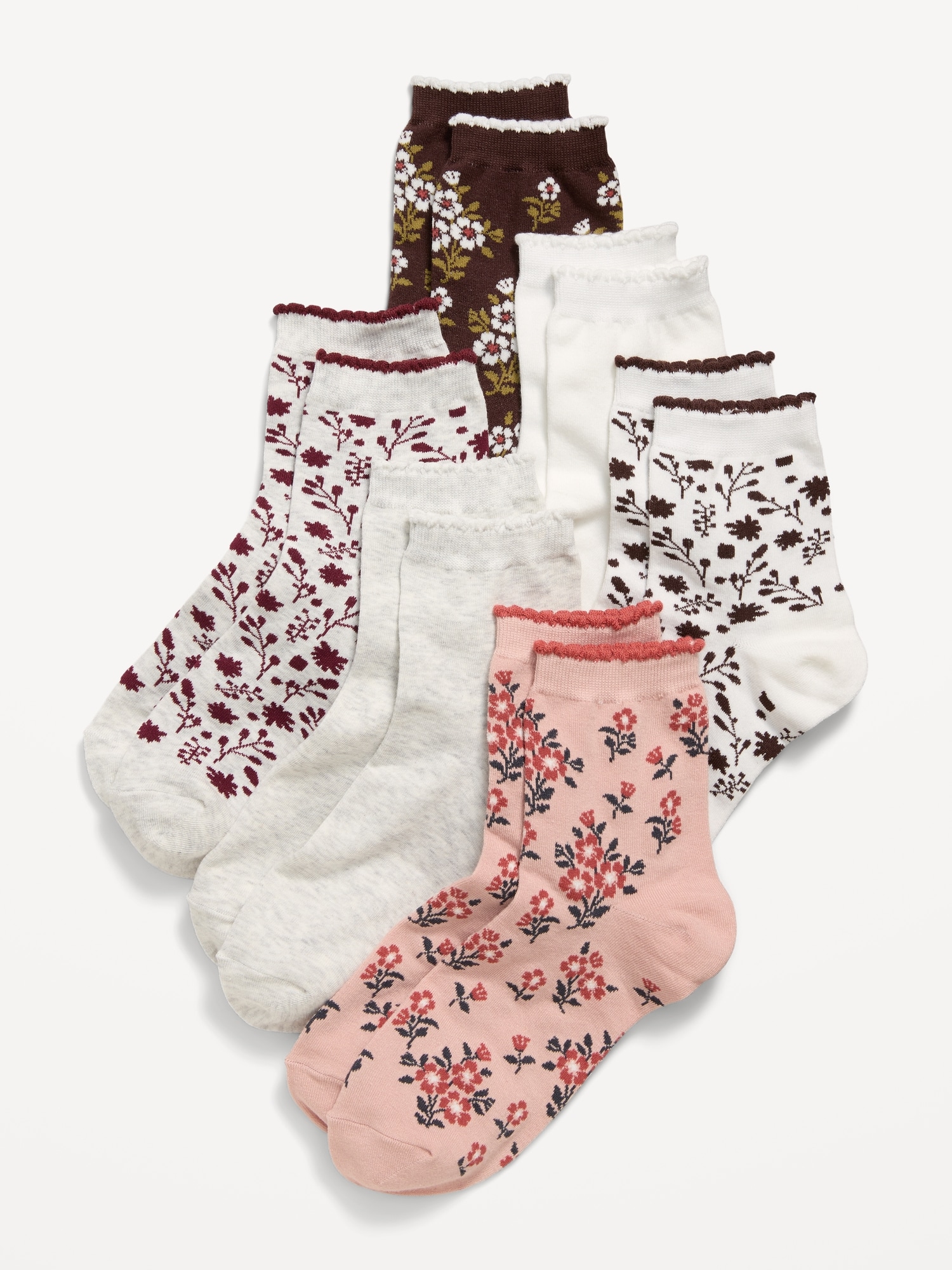 Novelty Quarter Crew Socks 6-Pack for Women: includes 6 pairs of socks in a variety of prints and patterns, notched toe seams for comfort, online exclusive, #761647