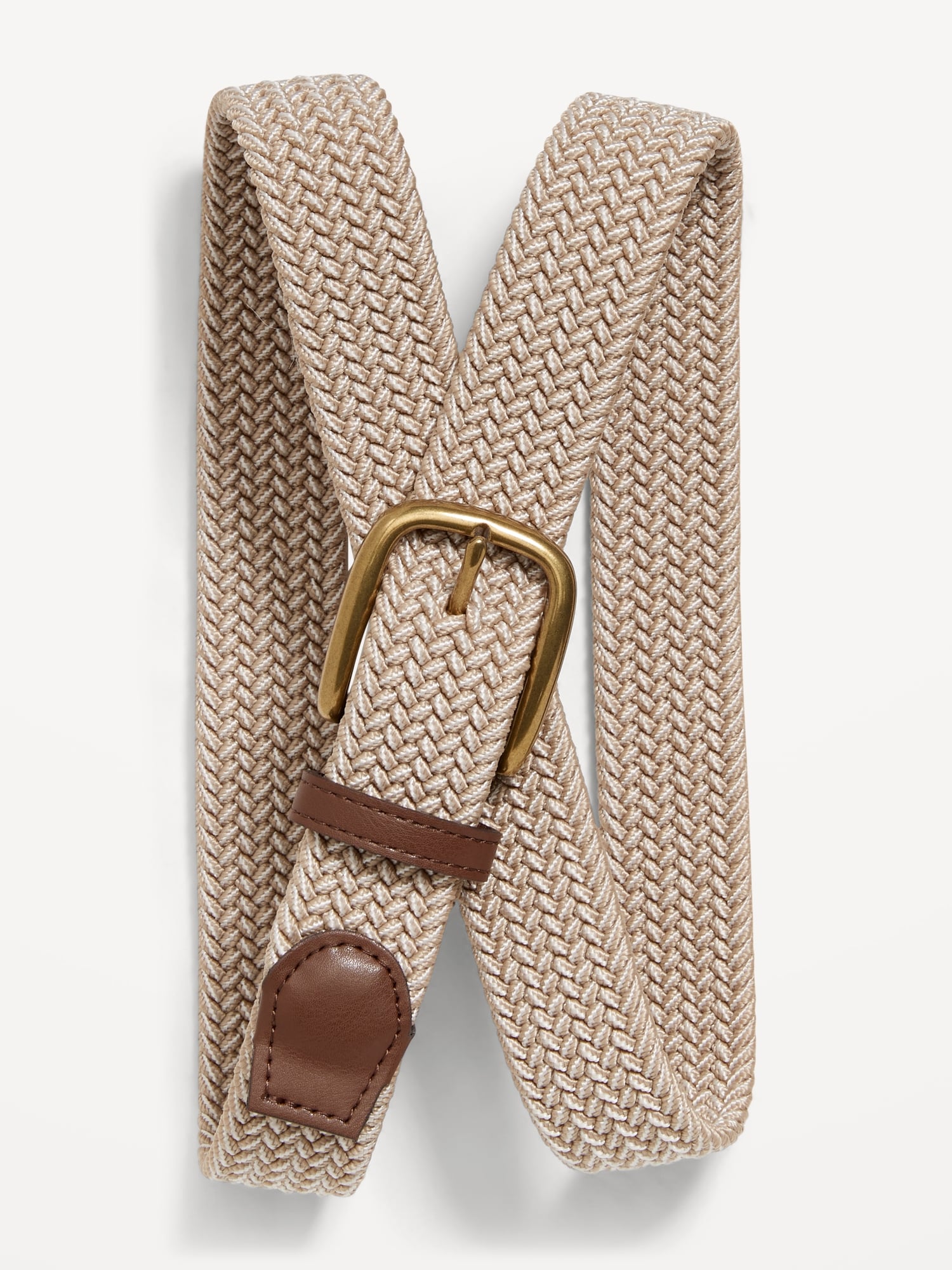 Nylon Braided Belt (1.25-inch): braided-nylon belt, metal buckle, faux-leather accents, #846035