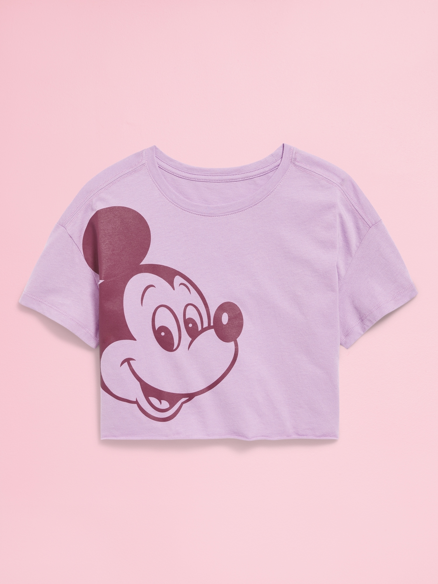 Old Navy x Disney© Cropped Graphic Raw-Edge T-Shirt for Girls: crew neck, short sleeves, licensed character graphic varies, raw-edge hem, Disney©, #763495