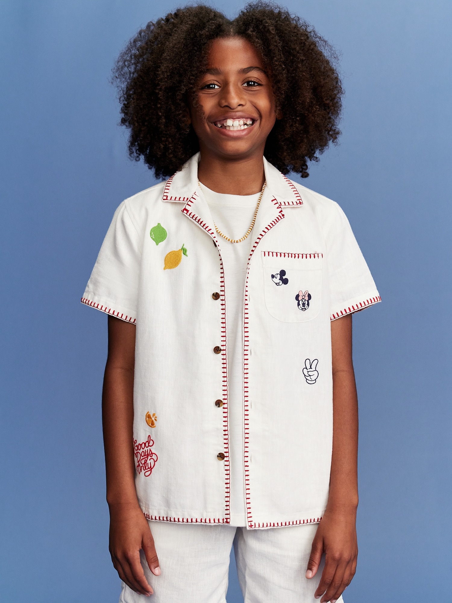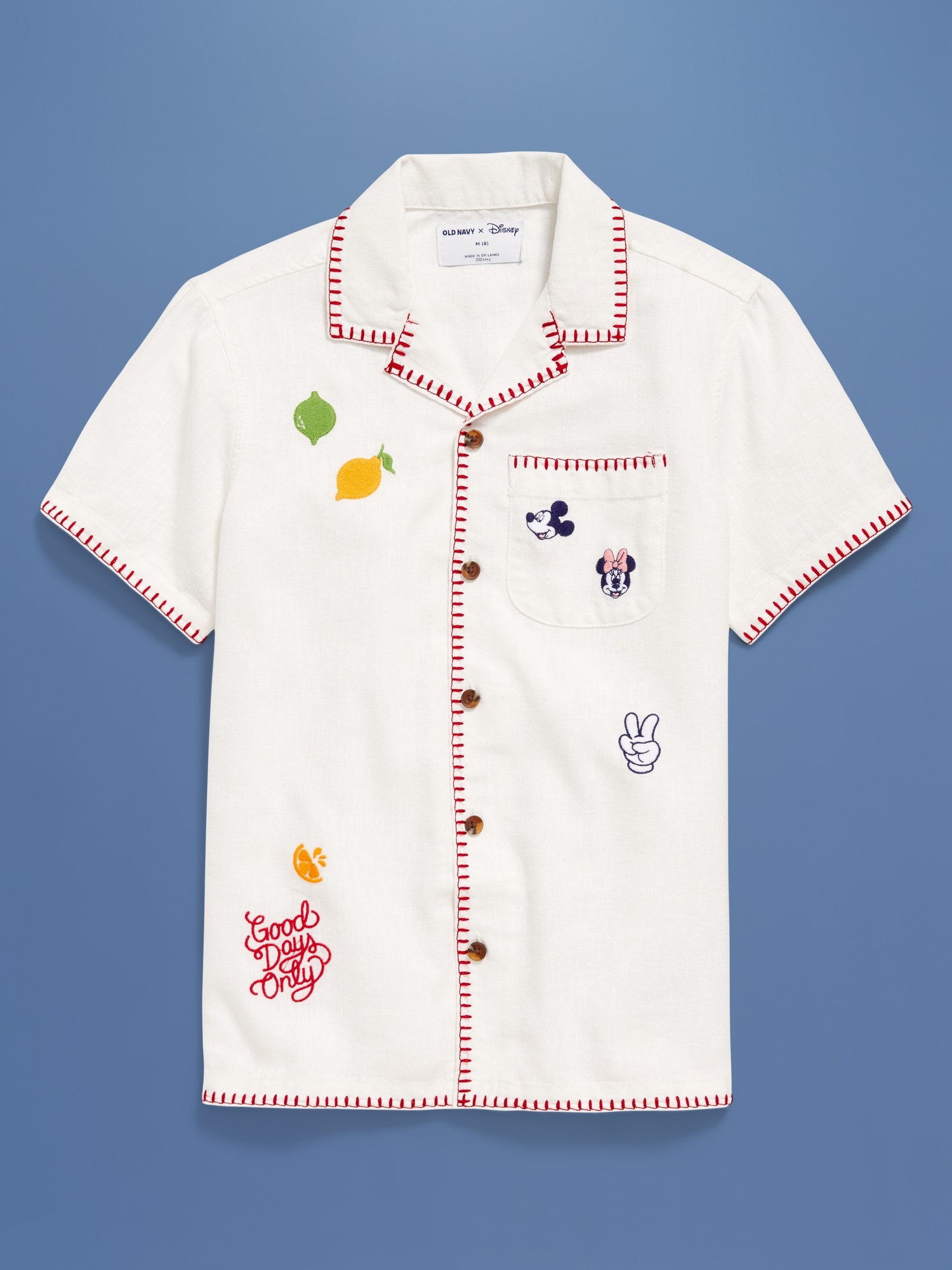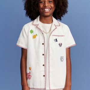 Old Navy x Disney© Linen-Blend Embroidered Pocket Shirt for Boys: Two icons, together at last. Browse the collection for the whole fam.spread collar, short sleeves, patch pocket at chest, full length buttoned placket, licensed graphic, all-over stripes, Disney©, #761685