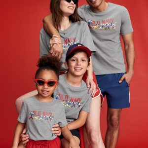 Old Navy x Disney© Logo-Graphic T-Shirt: Two icons, together at last. Family matching for the crew!rib-knit crew neck, short sleeves, chest graphic, full-scale licensed back graphic, Disney©, #752573