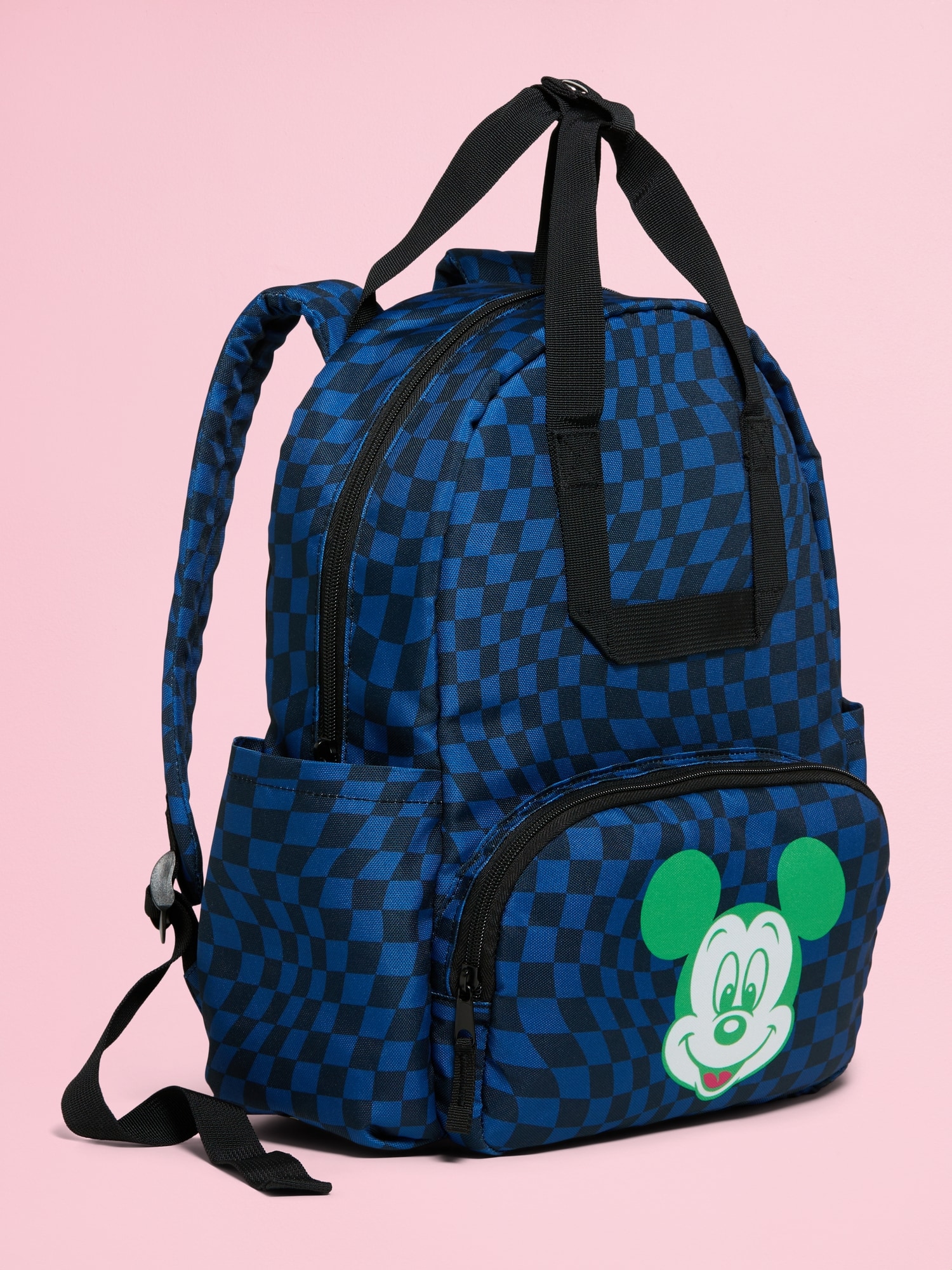 Old Navy x Disney© Mickey Mouse Gender-Neutral Backpack for Kids: zip-top closure, top handle, exterior zippered pouch compartment, licensed graphic, shoulder straps, open side pockets, Disney©, #791292