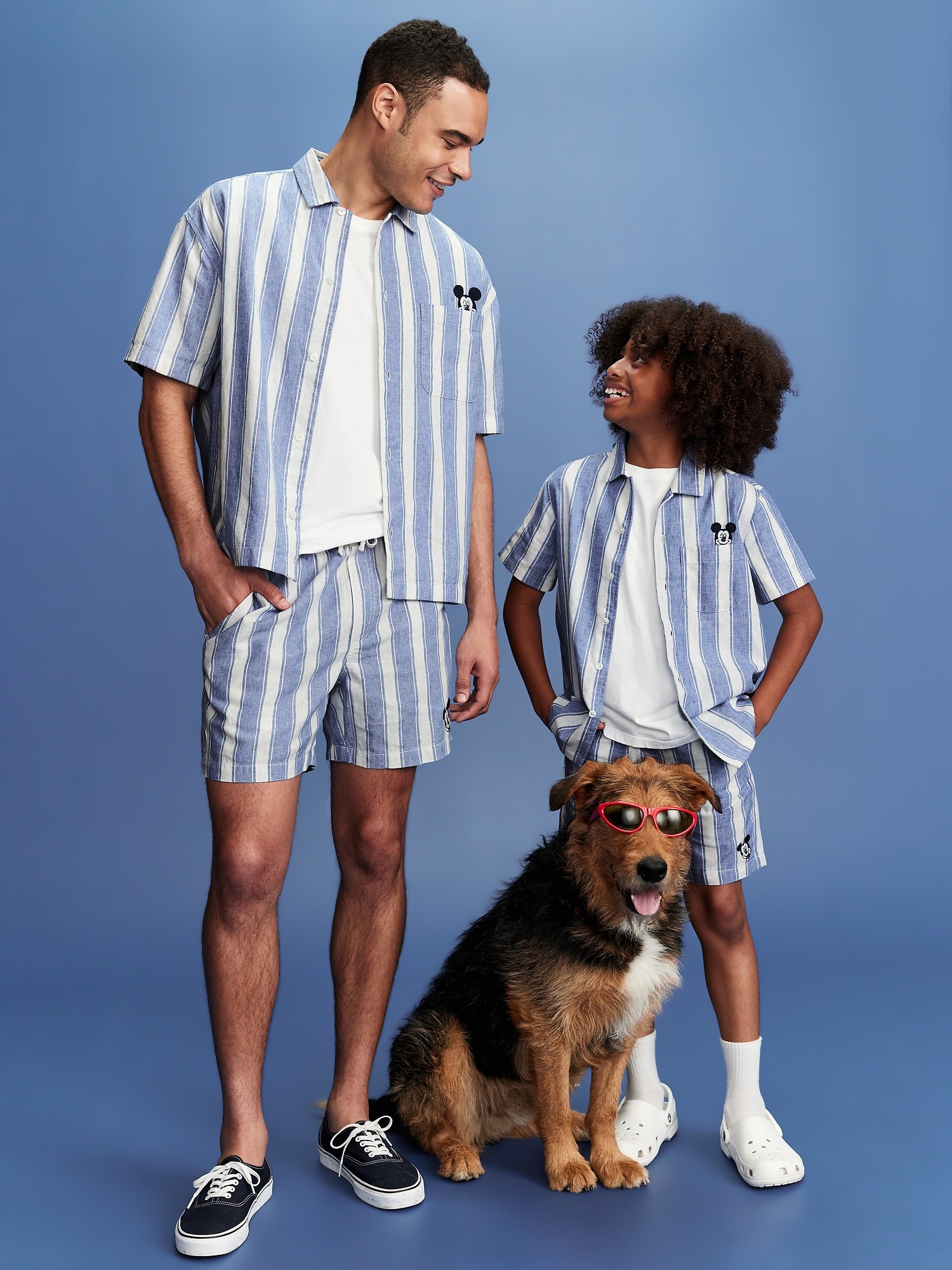 Old Navy x Disney© Mickey Mouse Knee Length Linen-Blend Shorts for Boys: Two icons, together at last. Family matching for the crew!elasticized waistband, functional drawstring, diagonal on-seam pockets, single welt pocket at back, contrasting blanket stitch trim along pockets, small-scale embroidered licensed graphic, Disney©, #766374