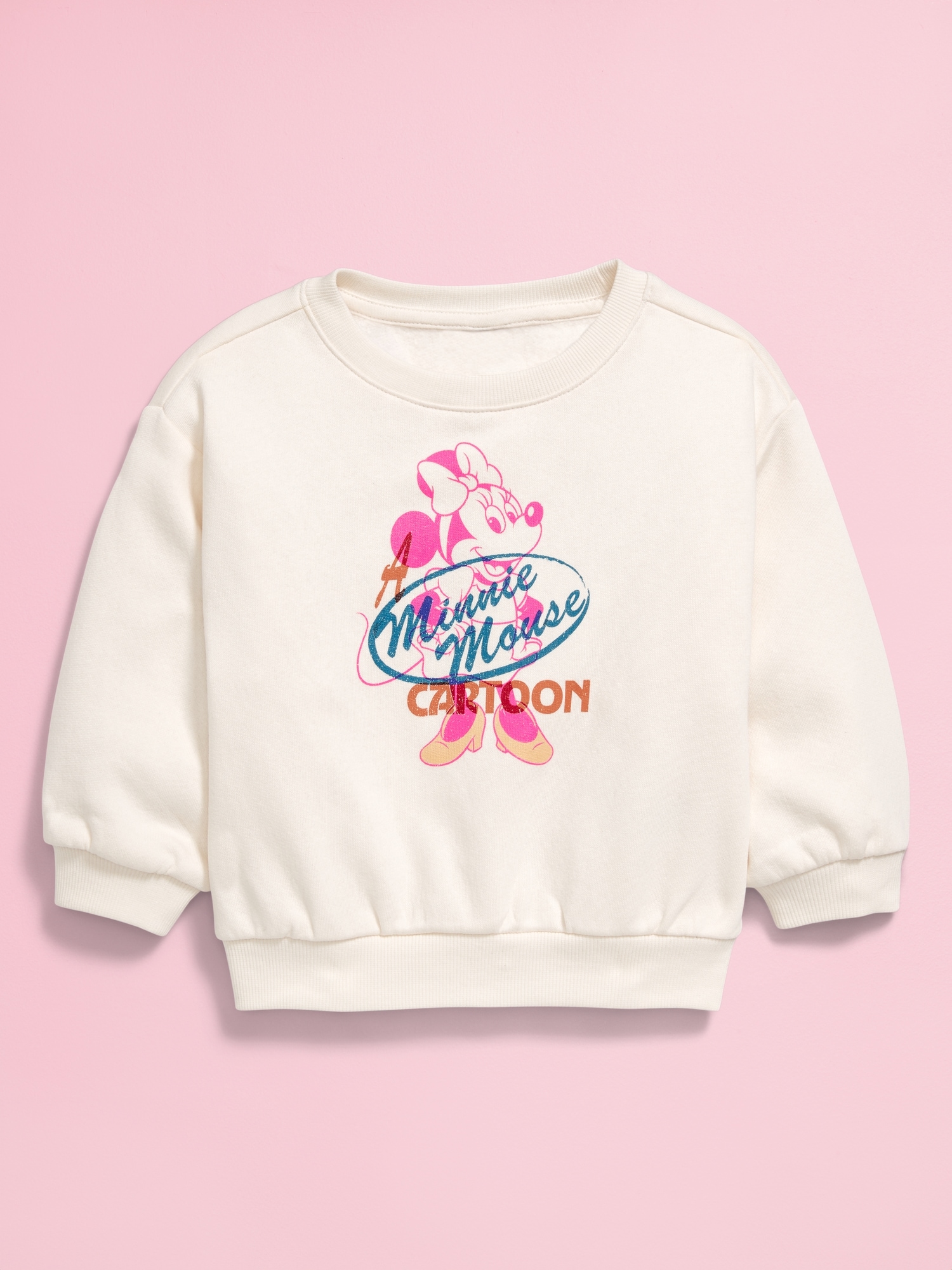 Old Navy x Disney© Minnie Mouse Crew-Neck Sweatshirt for Toddler Girls: crew neck, long sleeves, drop shoulders, licensed graphic, ribbed hem, Disney©, #762207