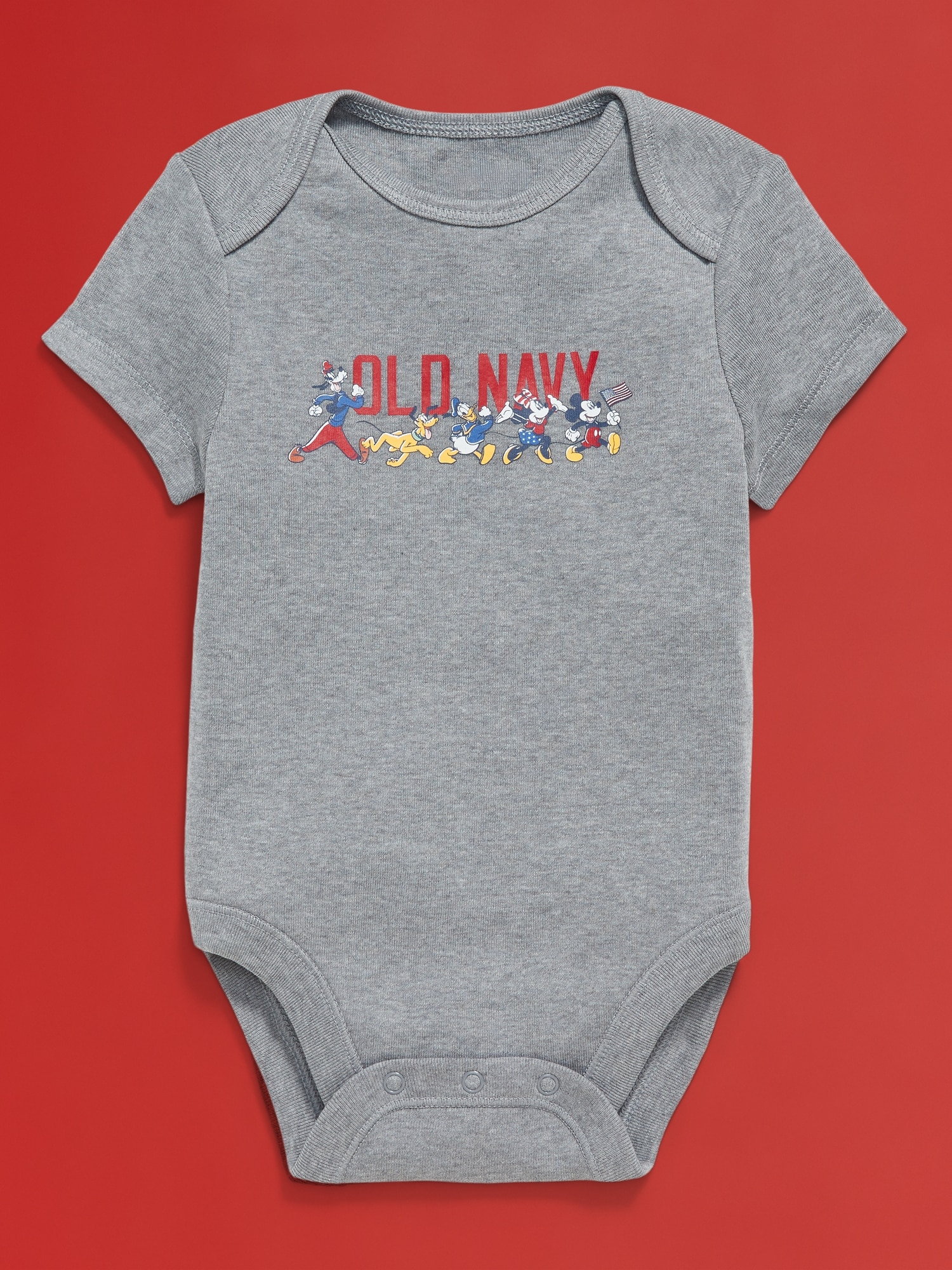 Old Navy x Disney© Short-Sleeve Logo-Graphic Bodysuit for Baby: Two icons, together at last. Family matching for the crew!rib-knit envelope neckline, short sleeves, snaps along inseam, licensed graphic, Disney©, #776474