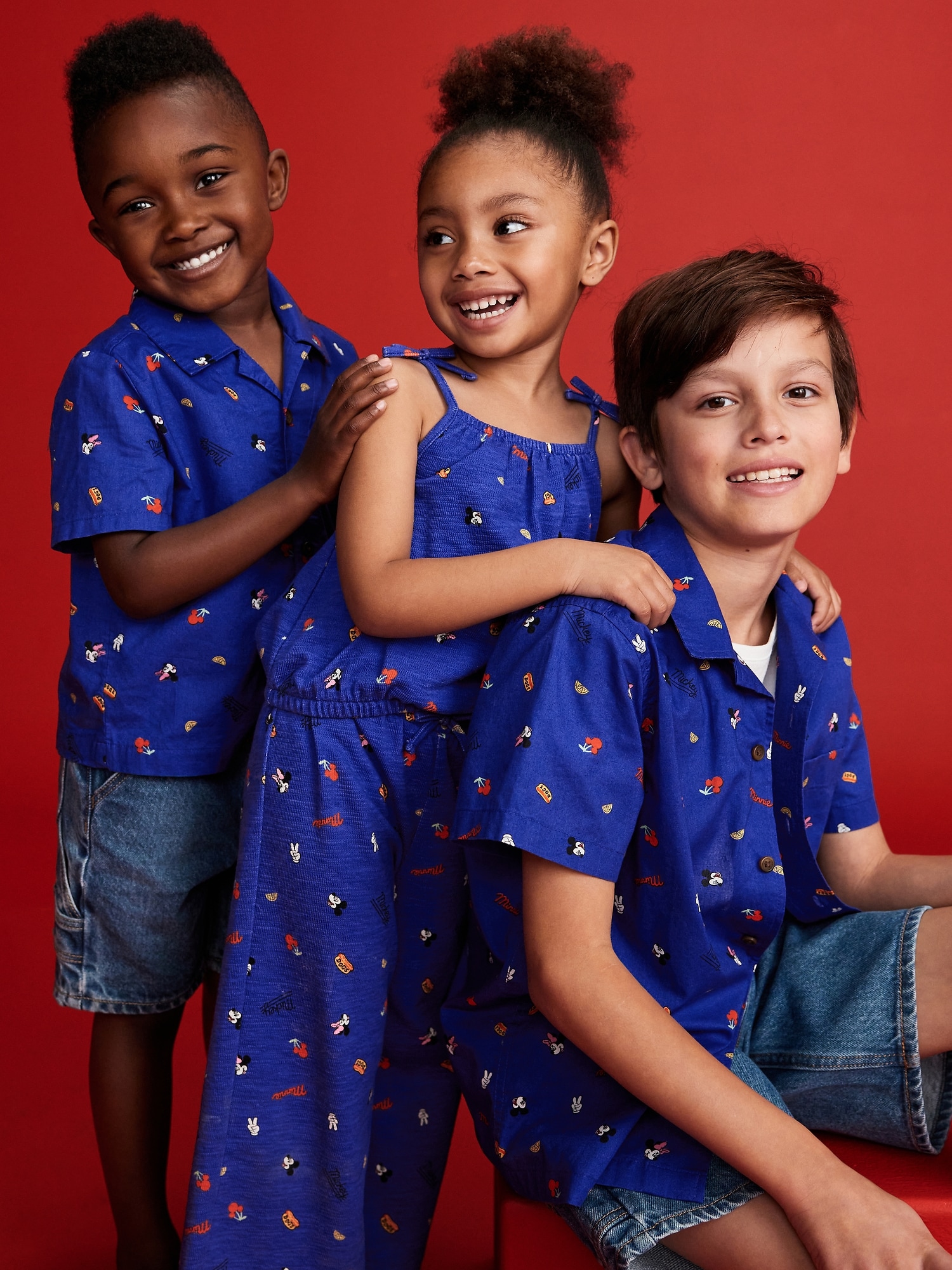 Old Navy x Disney© Sleeveless Henley One-Piece Graphic Romper for Baby: Two icons, together at last. Family matching for the crew!cinched round neckline, three-button henley placket, sleeveless, elasticized bubble leg openings, hidden snaps along inseam, licensed graphic, Disney©, #761818