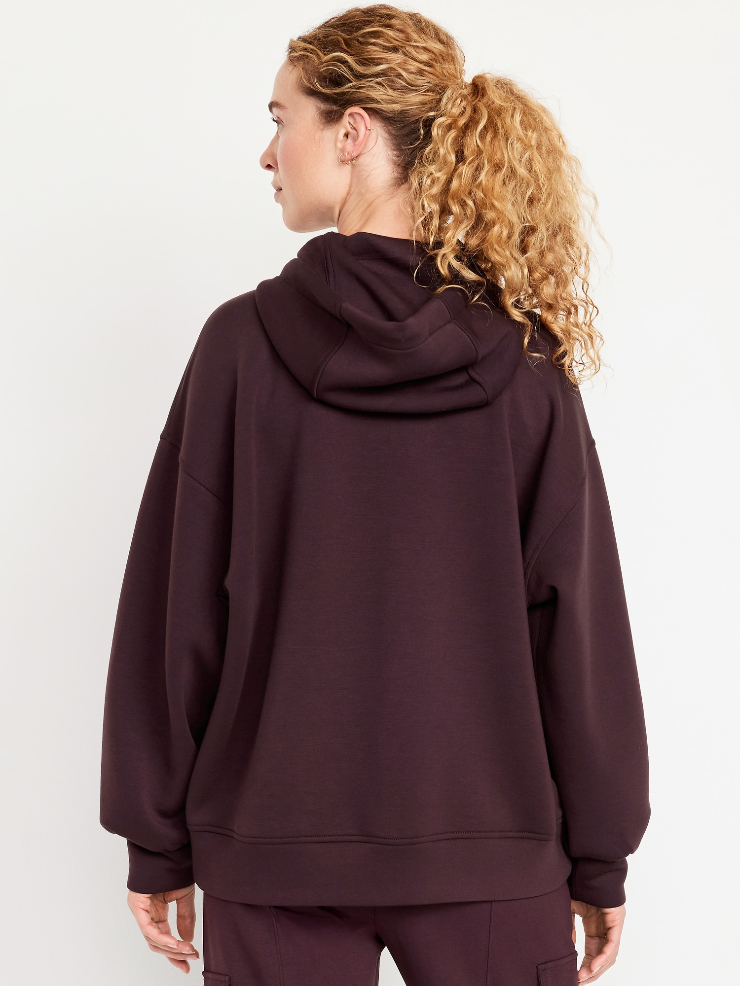 Oversized Bounce Fleece Zip Tunic Hoodie Sweatshirt: Featuring Bounce Fleece. A smooth, cooling finish that feels good and looks chic everywhere you go.drawstring hood, drop-shoulder sleeves, full-zip front, hand-warming pockets, breathable, #569981