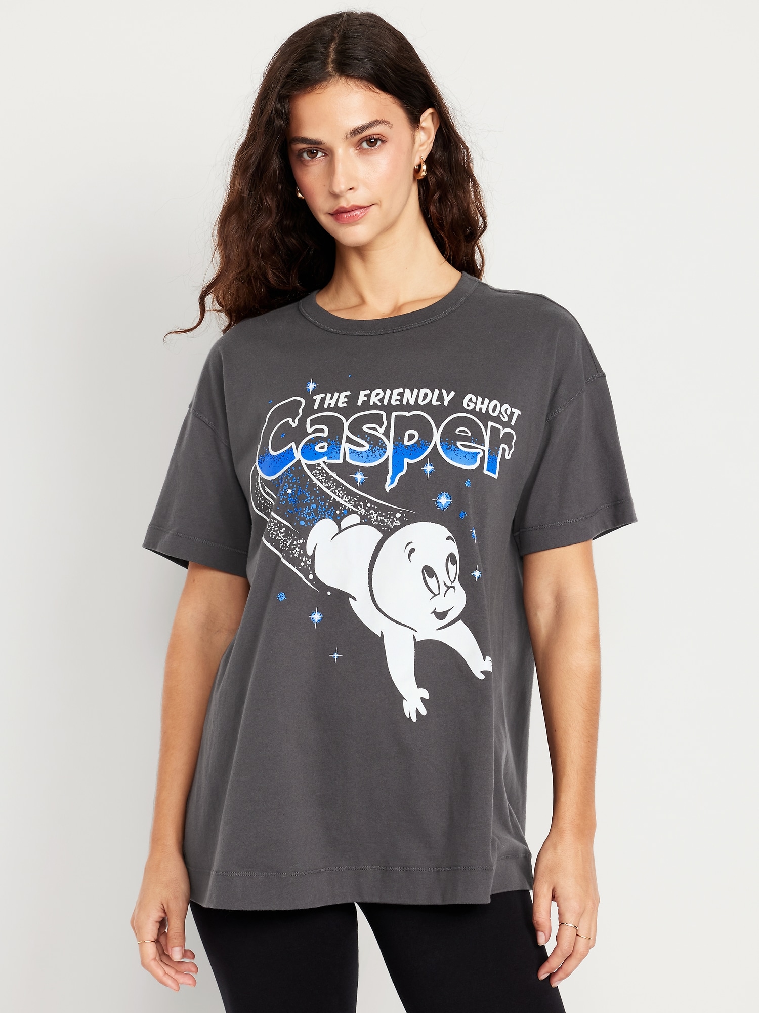 Oversized Casper the Friendly Ghost™ T-Shirt: available exclusively online and at outlet stores, rib-knit crew neck, short drop-shoulder sleeves, licensed graphic, vented sides, © 2025 The Smashing Pumpkins All Rights Reserved., #805707