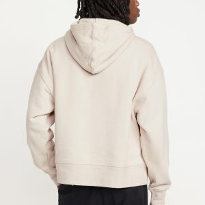 Oversized Cropped Hoodie: built-in hood, long sleeves, kangaroo pocket, rib-knit trim, pullover style, #665120