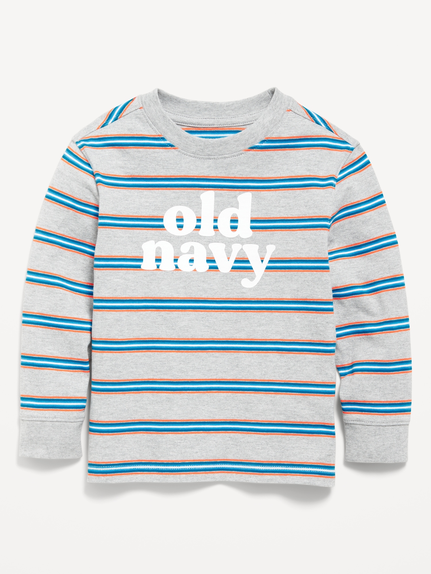 Oversized Heavyweight Logo-Graphic T-Shirt for Toddler Boys: crew neck, long sleeves, drop shoulders, logo graphic at front, #766989