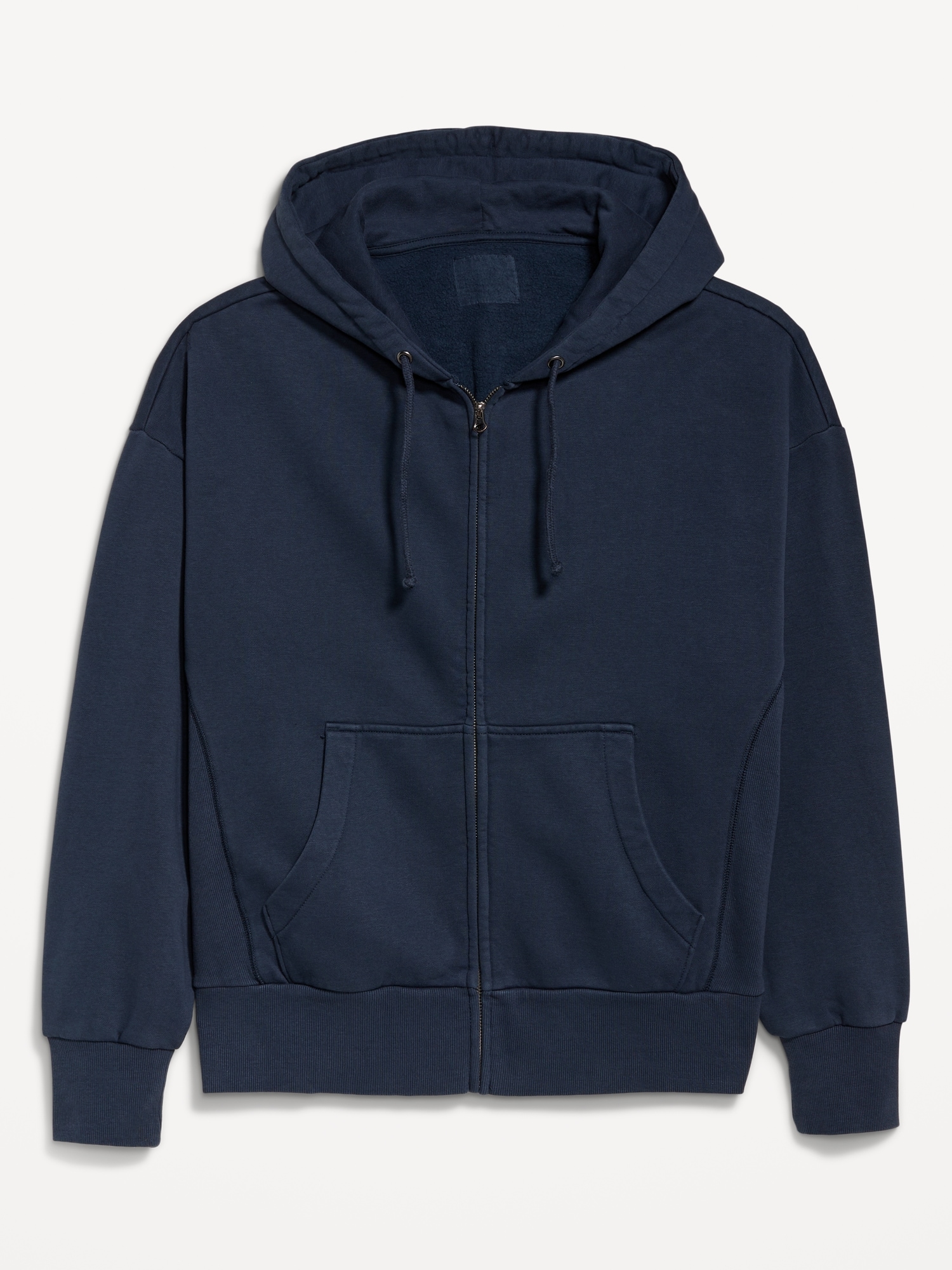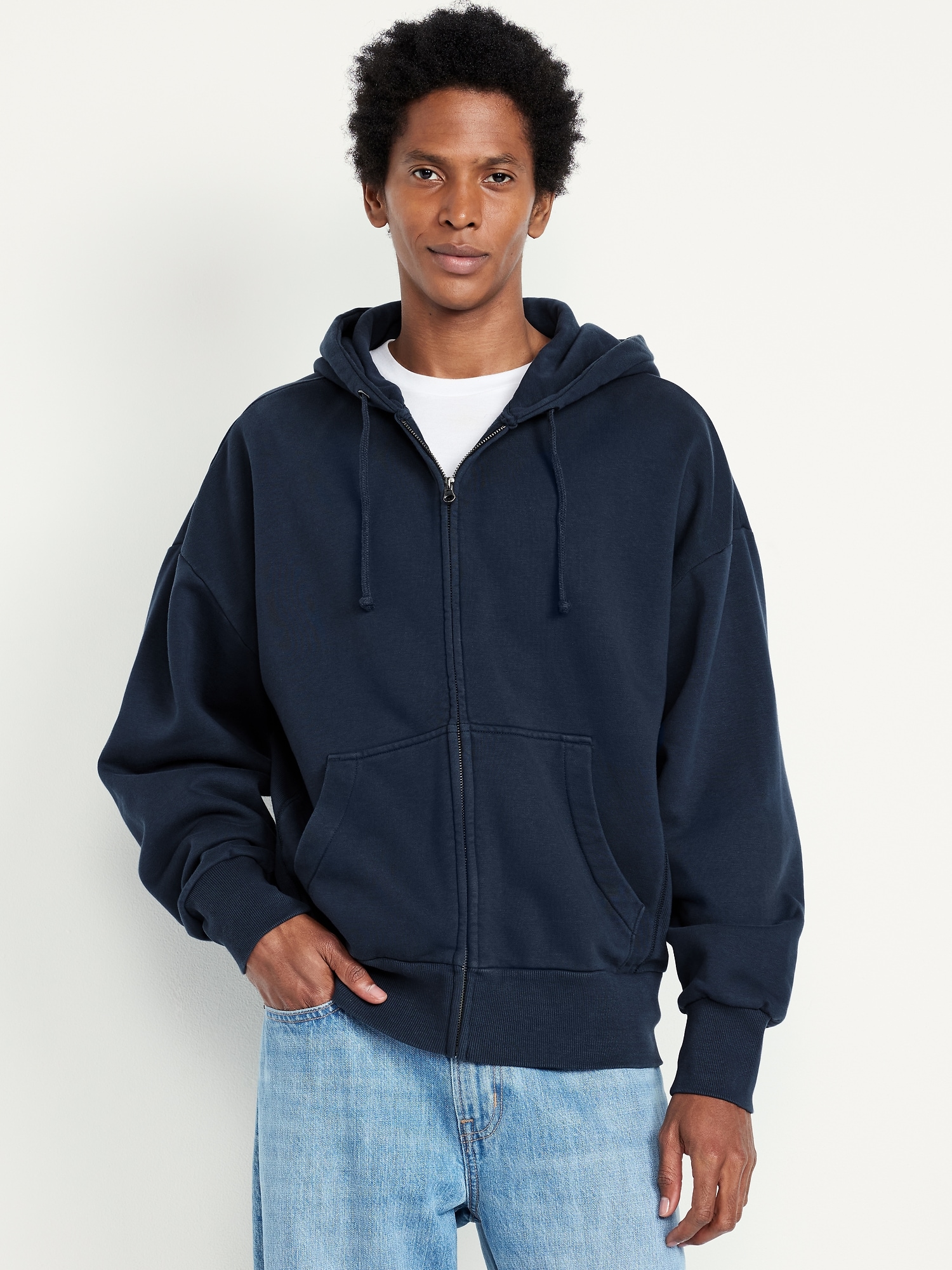 Oversized Heavyweight Zip Hoodie: drawstring hood, long sleeves, full-zip front, hand-warming pockets, rib-knit cuffs, hem and side panels, #787703