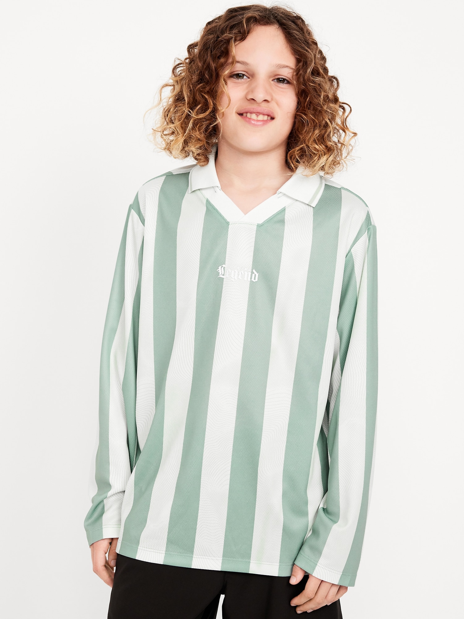 Oversized Long-Sleeve Collared Performance Top for Boys
