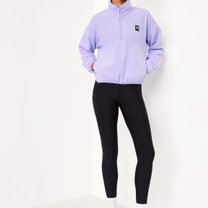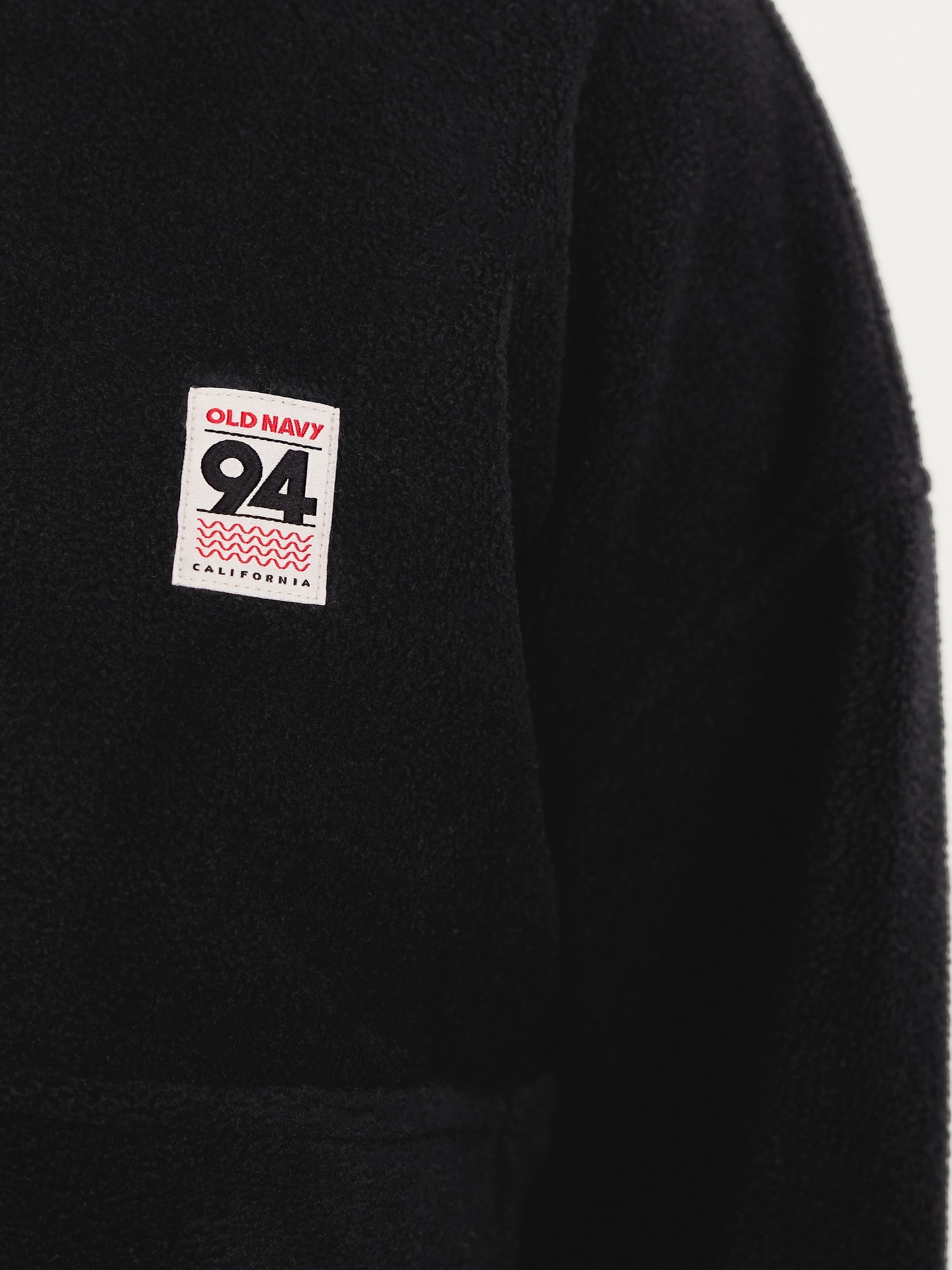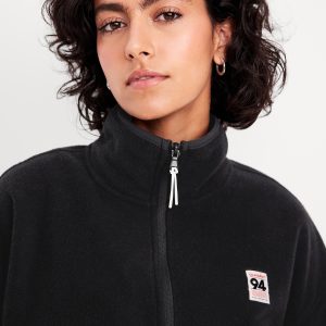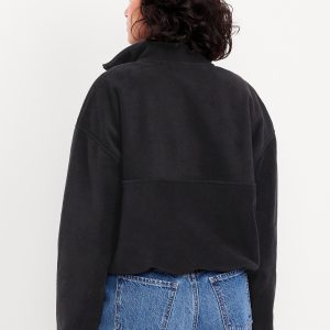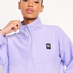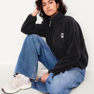 Oversized Performance Microfleece Cropped Half Zip: half-zip funnel neck, drop-shoulder sleeves with elastic cuffs, on-seam pockets, elastic hem, pullover style, color-blocked panels, #784810