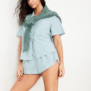 Oversized Poplin Pajama Shorts: elastic waistband, vented sides, prints vary, #707497