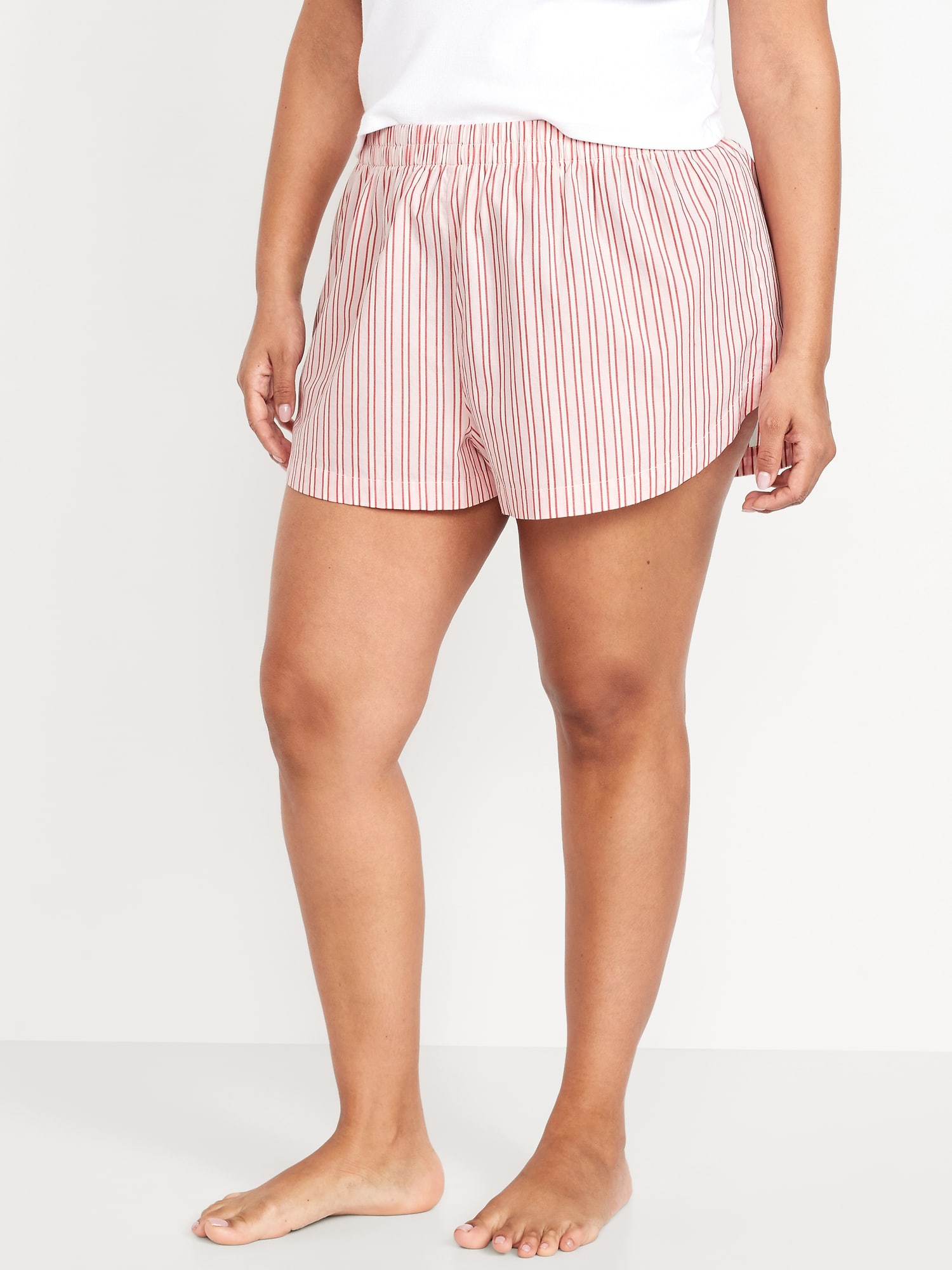 Oversized Poplin Pajama Shorts: elastic waistband, vented sides, prints vary, #707497