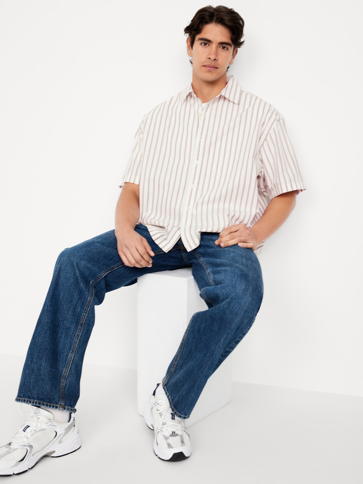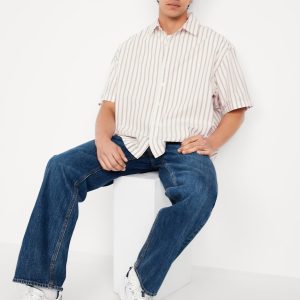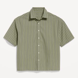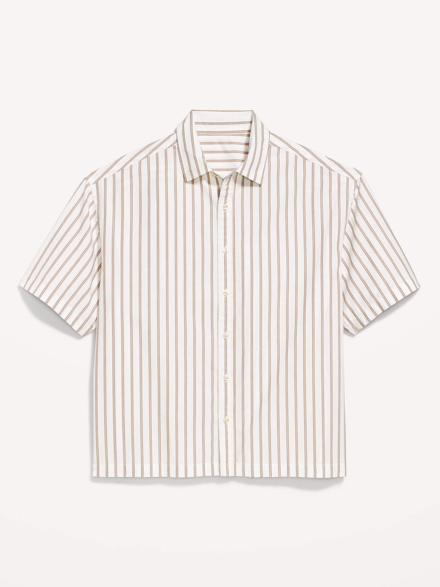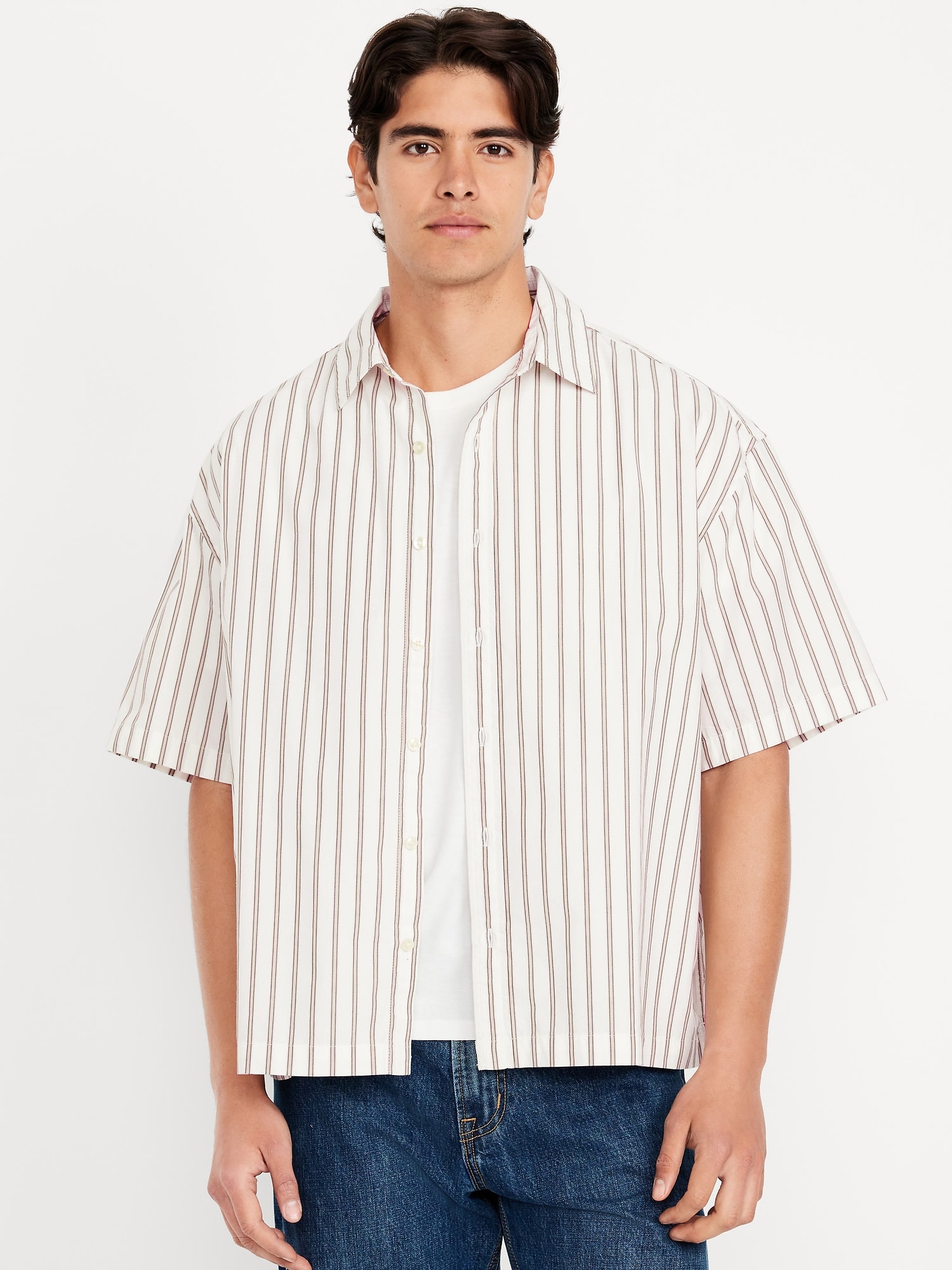 Oversized Poplin Shirt: spread collar, short sleeves, full-button front, vented sides, #781619